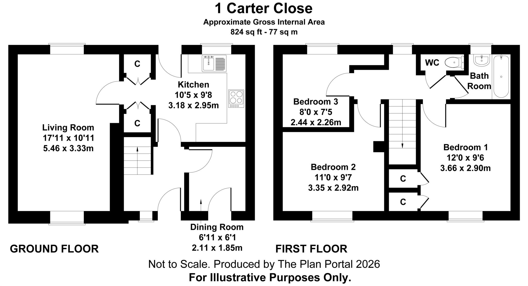 Central entrance hall with staircase to the first floor and access to ground floor rooms, including useful built-in storage cupboards.