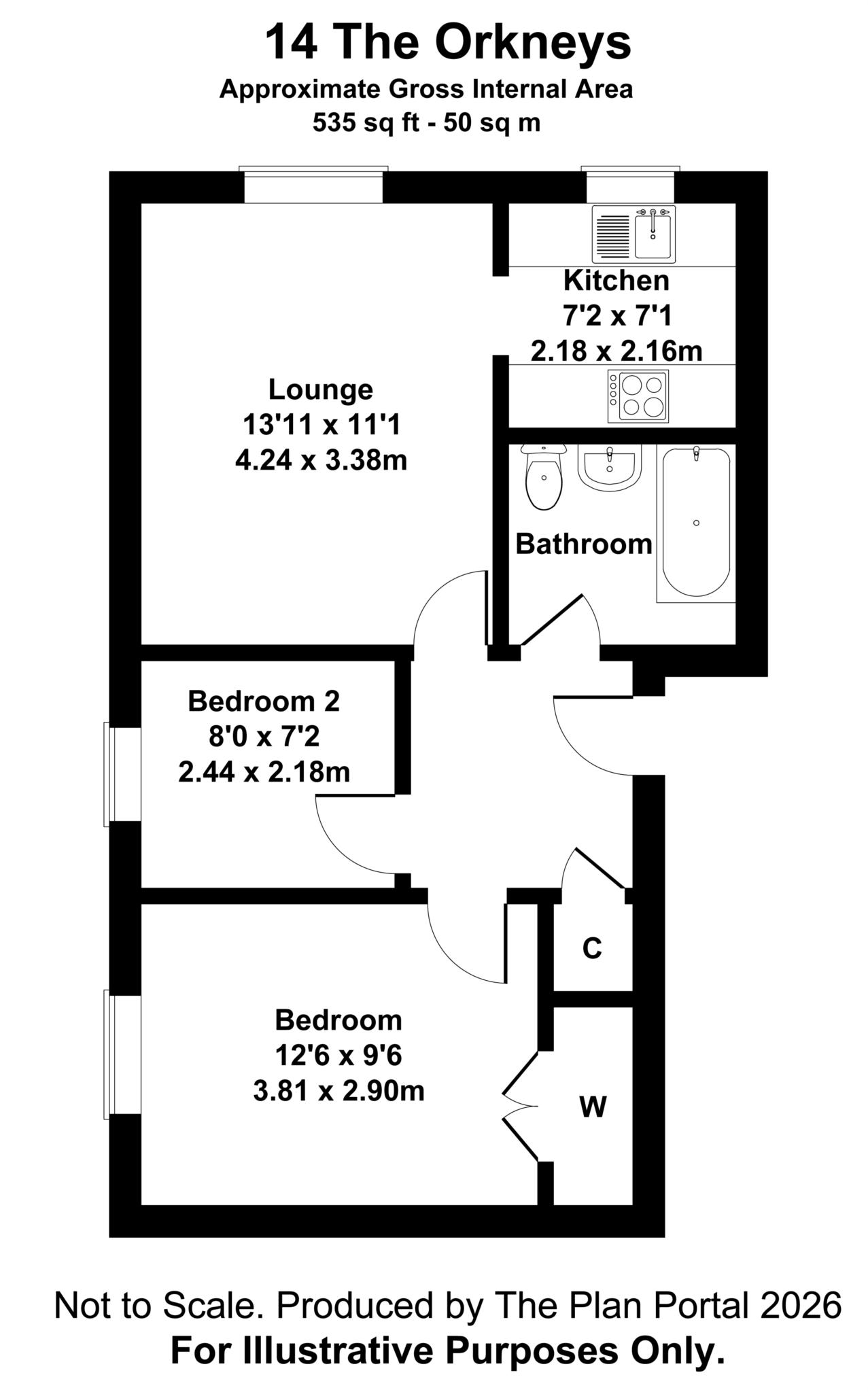 Bedroom 2 - 8'0" (2.44m) x 7'2" (2.18m)