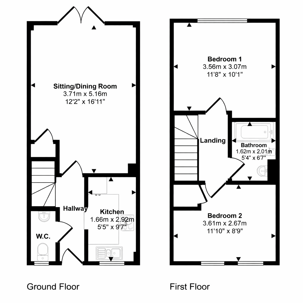 Bedroom 2 - 11'10" (3.61m) x 8'9" (2.67m)
