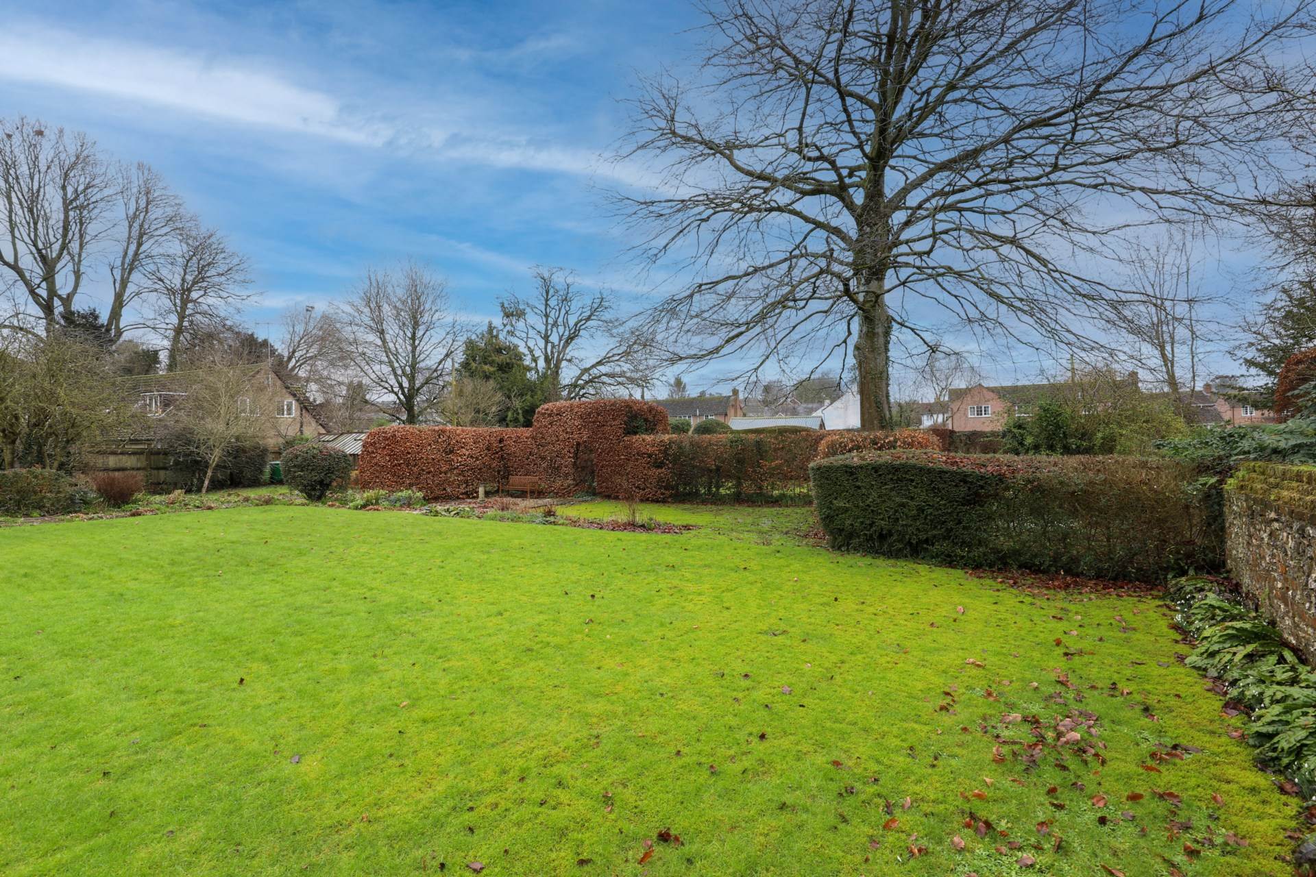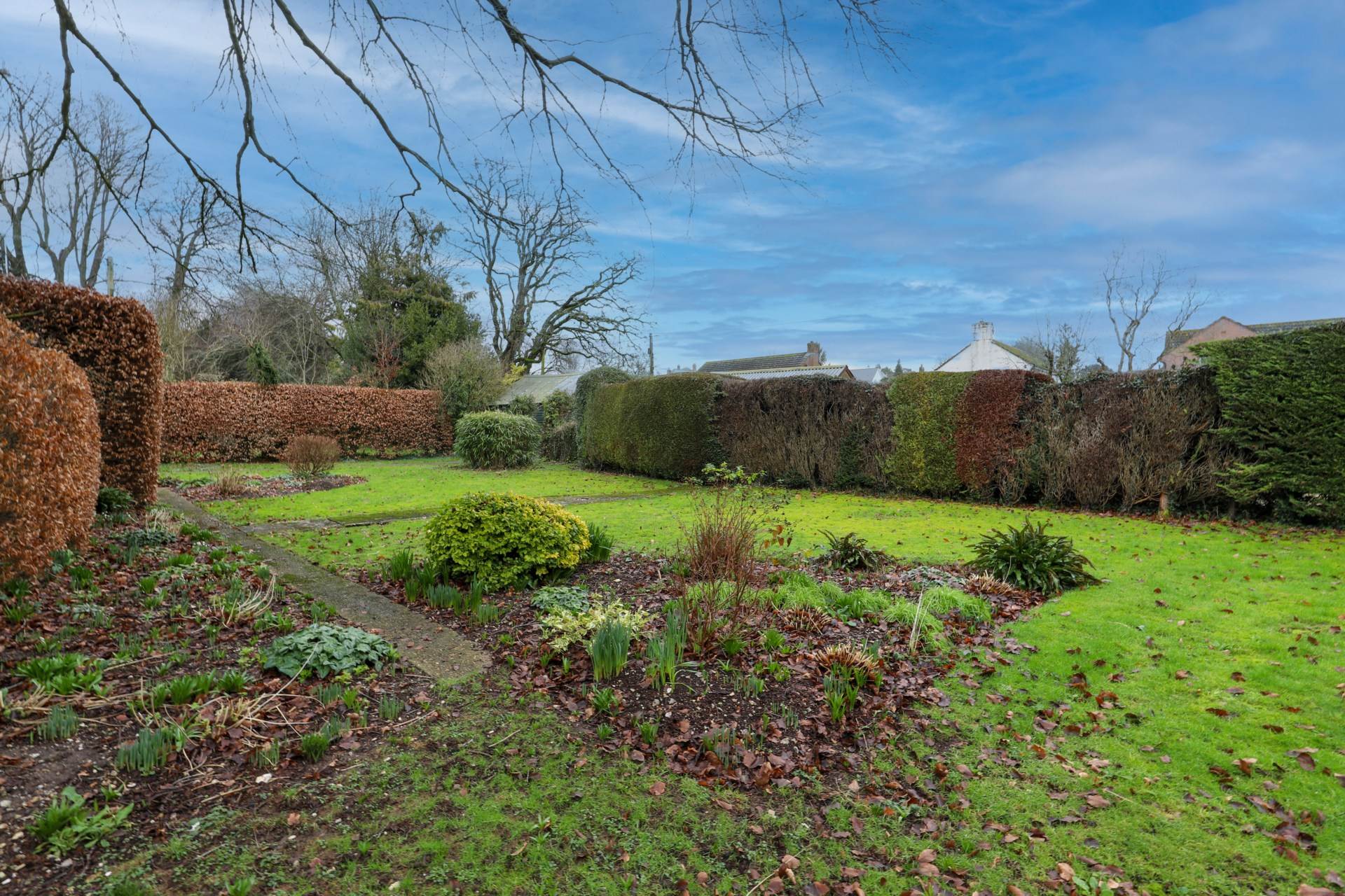 A pathway leads through the garden to the house, which sits centrally, enjoying a sunny south facing terrace with an automatic awning beside the kitchen. The sweeping lawns front and rear are dotted with spring bulbs, fruit trees, specimen planting and well established borders.