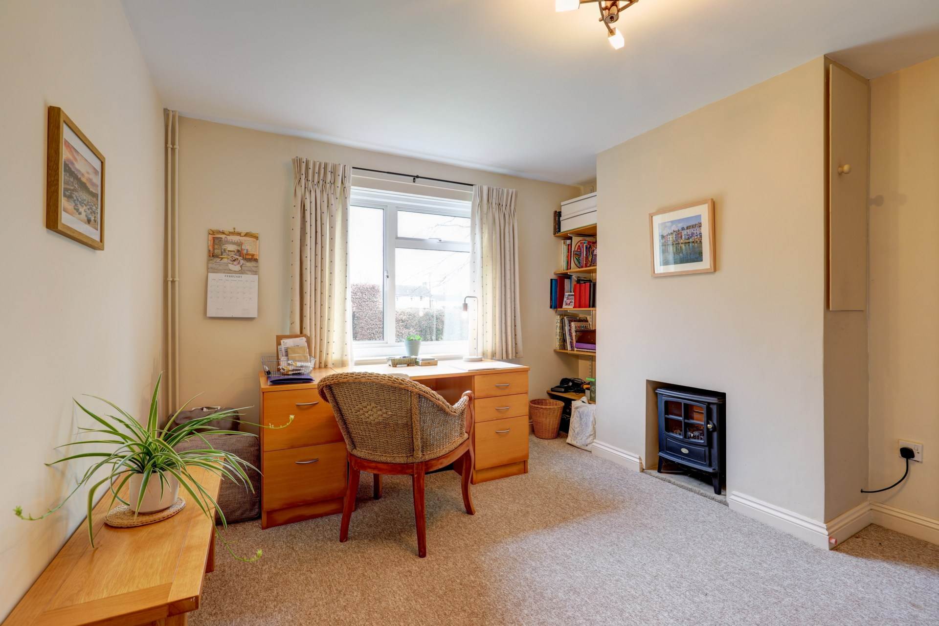 The entrance hall leads through to a cosy sitting room with a fireplace and a log burner, along with a second reception room that works well as either a study, additional snug or possibly a downstairs bedroom.