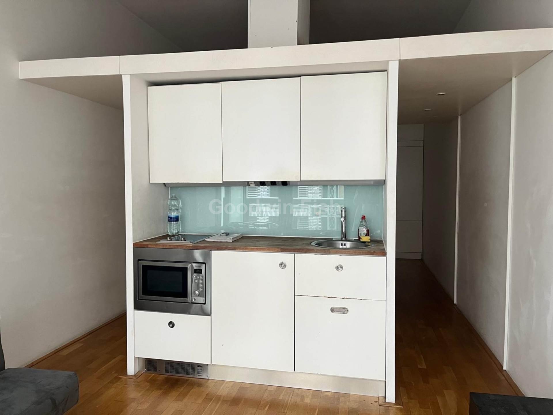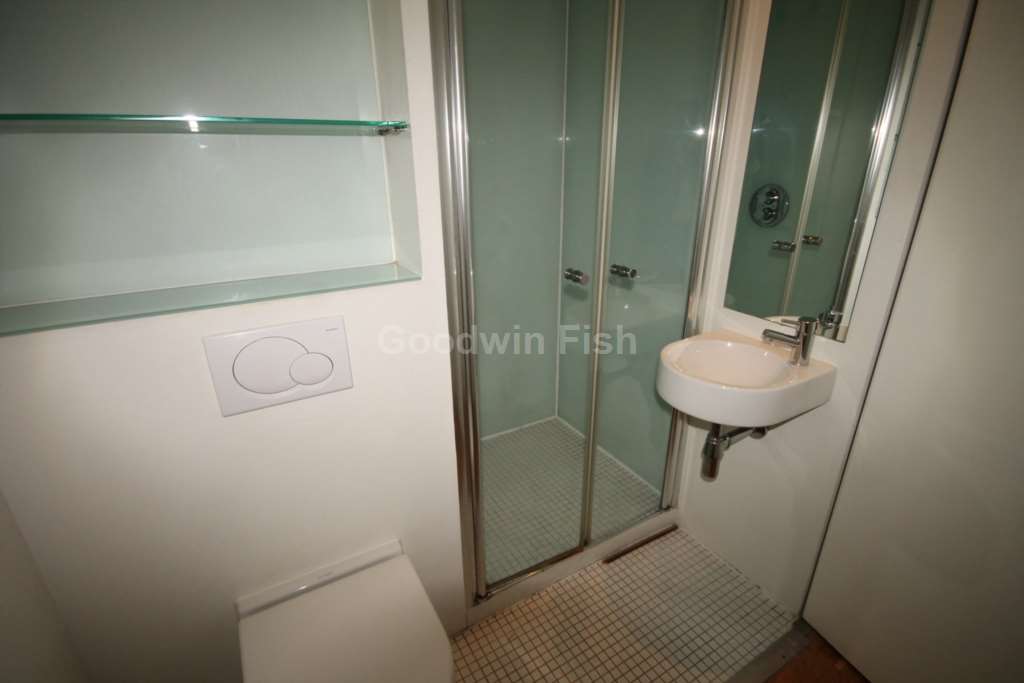 Property briefly comprises: Bedroom area with pull down bed and clothes storage, shower room with separating wall partitions, fitted kitchen with appliances and an open plan lounge area with access to a balcony with views over Salford.