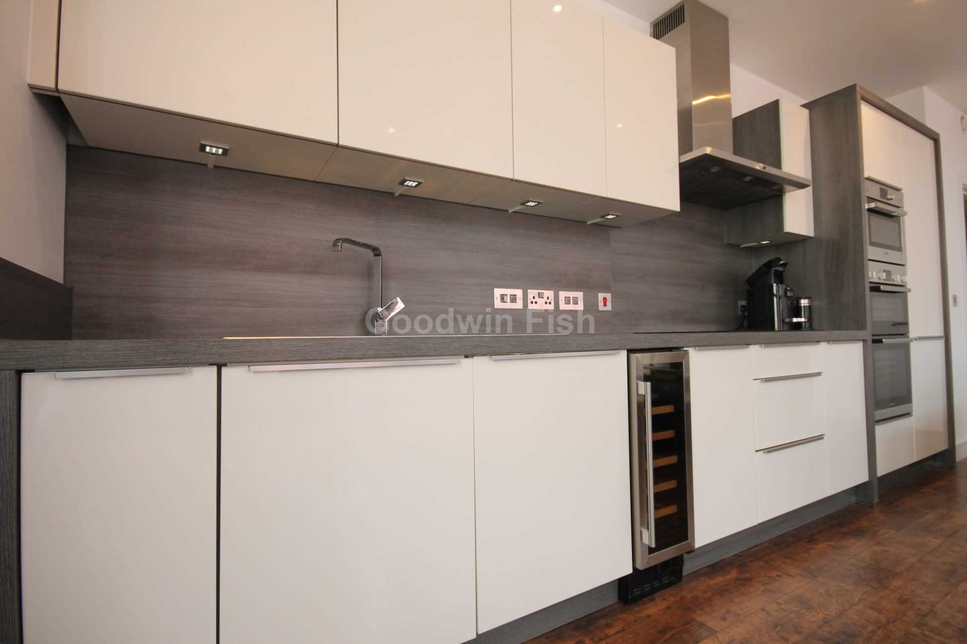 Open Plan Living Room/Kitchen - 6.69m x 5.07m (21`11" x 16`8") - A fantastic living room with high ceilings and exposed brick work, large double glazed arch windows to the rear and side elevations incorporating a Juliet balcony allowing for a great deal of natural light into the apartment, oak engineered wood flooring, TV point, telephone point, space for dining table, 4 electric wall mounted heaters. The kitchen is fitted with a modern range of base and wall units with work surfaces over and splash backs, integrated Bosch electric double oven and microwave, touch control 4 ring ceramic hob and extractor hood, integrated Bosch fridge/freezer, dishwasher and wine cooler, 1 ½ bowl sink and drainer unit, recessed ceiling down lighters.