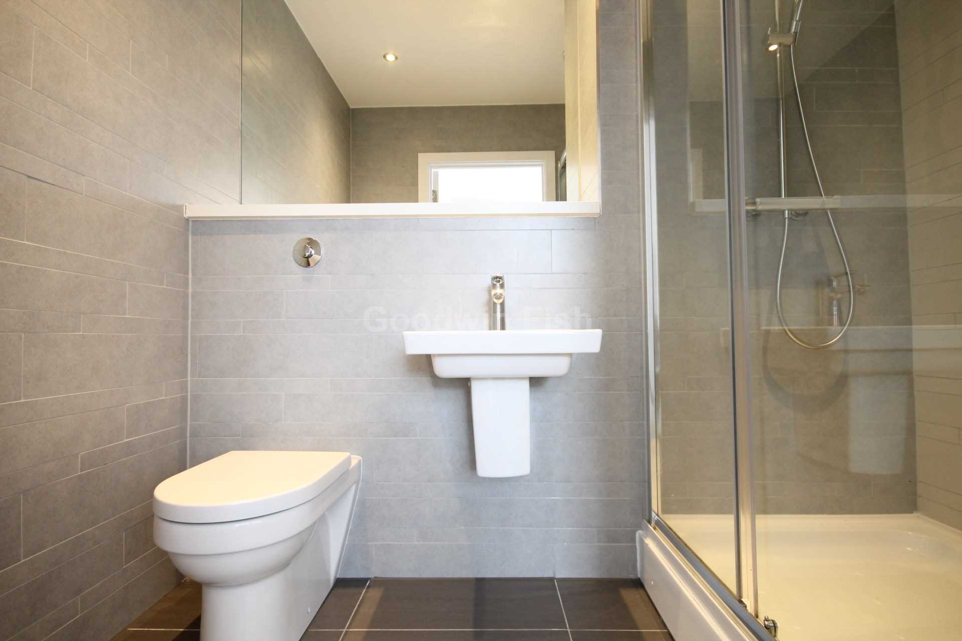 En-Suite Shower Room - 2.40m x 1.14m (7`10" x 3`9") - Fitted with a contemporary Villeroy and Boch three piece suite comprising WC, wash hand basin, enclosed shower cubicle, tiled walls and flooring, wall mounted heated towel rail, recessed ceiling down lighters, wall mounted mirror, wall mounted heated ladder towel rail.
