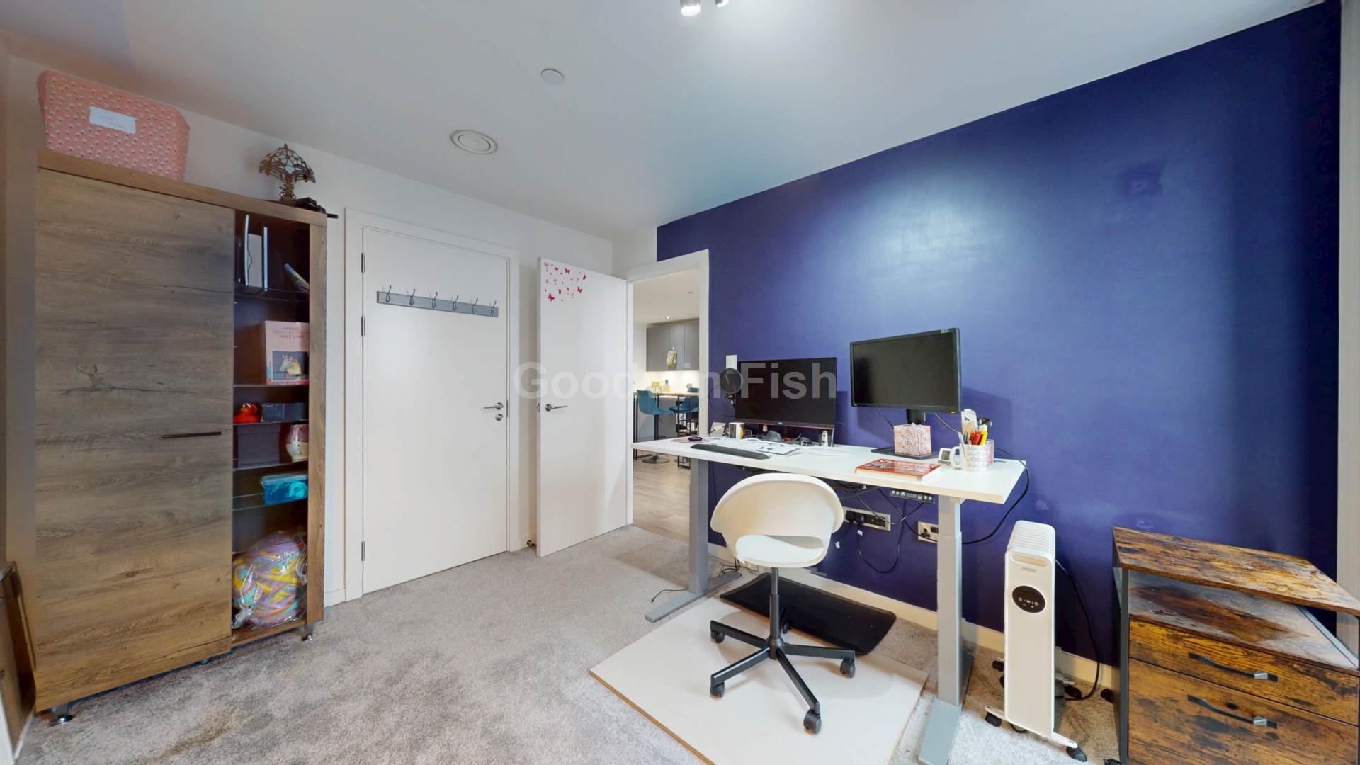 This well mainatined apartment offers 689 sqft of living space and briefly comprises: entrance; open plan lounge/diner with Juliet balcony; integrated kitchen with appliances; primary bedroom with en suite facilities; second double bedroom/office; primary Jack and Jill bathroom.