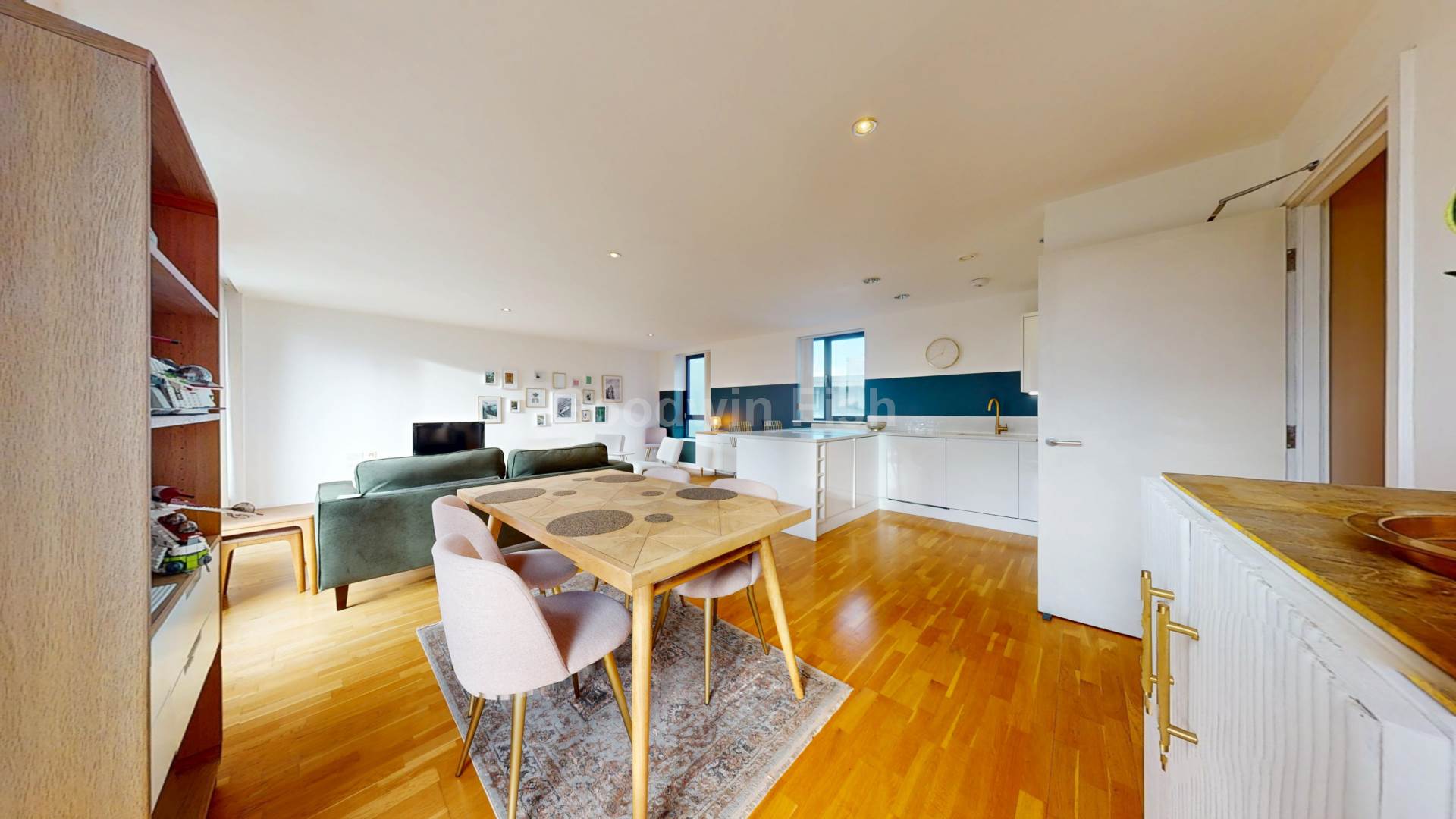 Situated on the 4th floor and benefiting from a dual aspect taking in views of the Mamucium Roman ruins, the property is generously proportioned offering an estimated 920 sqft and briefly comprises: entrance/hallway with washer/dryer; a spacious open plan lounge/diner with sliding doors opening on to an external balcony; an upgraded kitchen with substantial work top space, a breakfast bar, ample storage, and integrated appliances; a comfortable primary bedroom with feature panelling, fitted wardrobes and access to en suite shower room; a second double bedroom/work-from-home office space with additional fitted wardrobe/storage space; plus, a large primary bathroom.