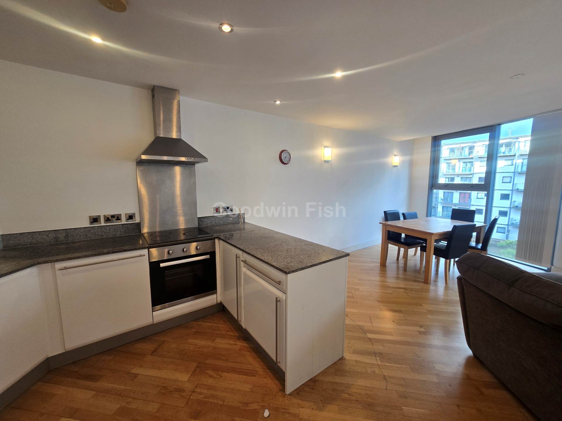 This fourth floor apartment comes with two double bedrooms with floor to ceiling windows, large three piece bathroom, modern fitted kitchen, open plan spaced living area with large floor to ceiling windows.