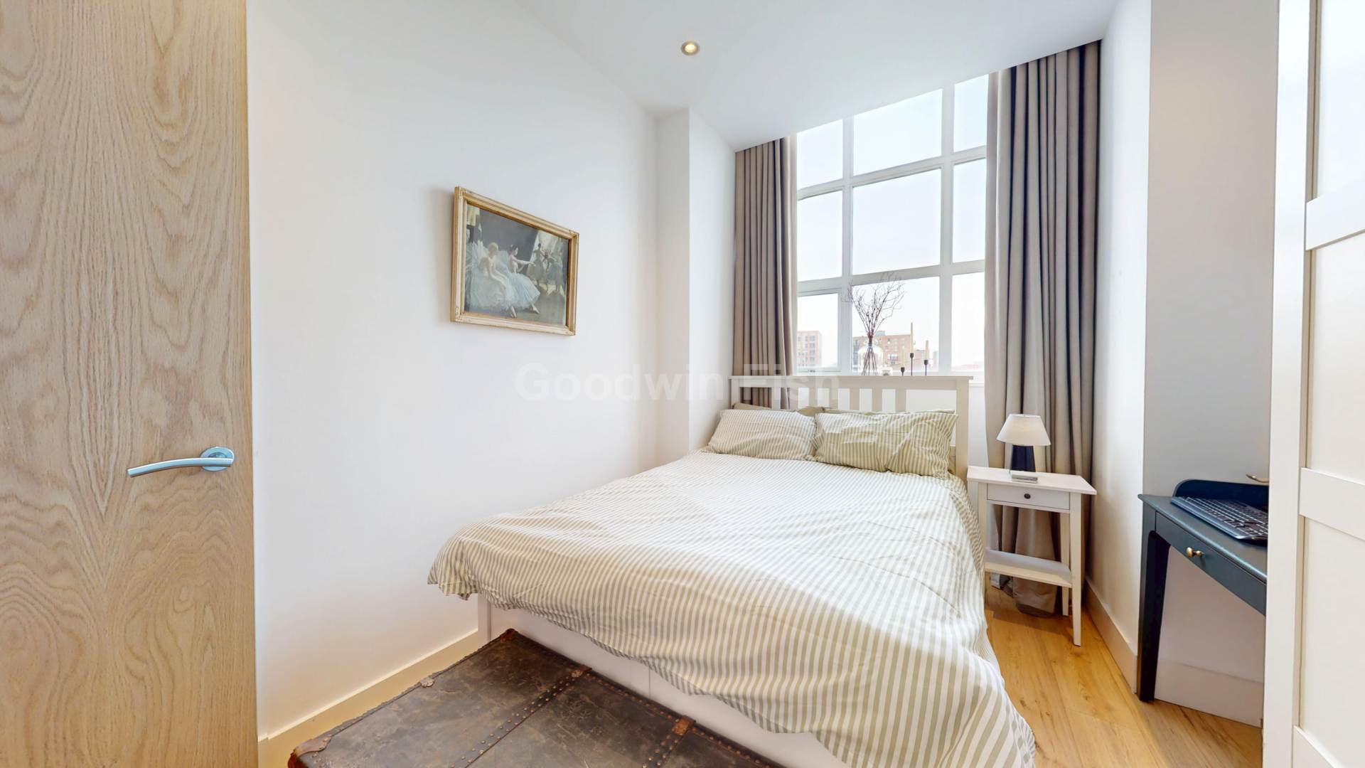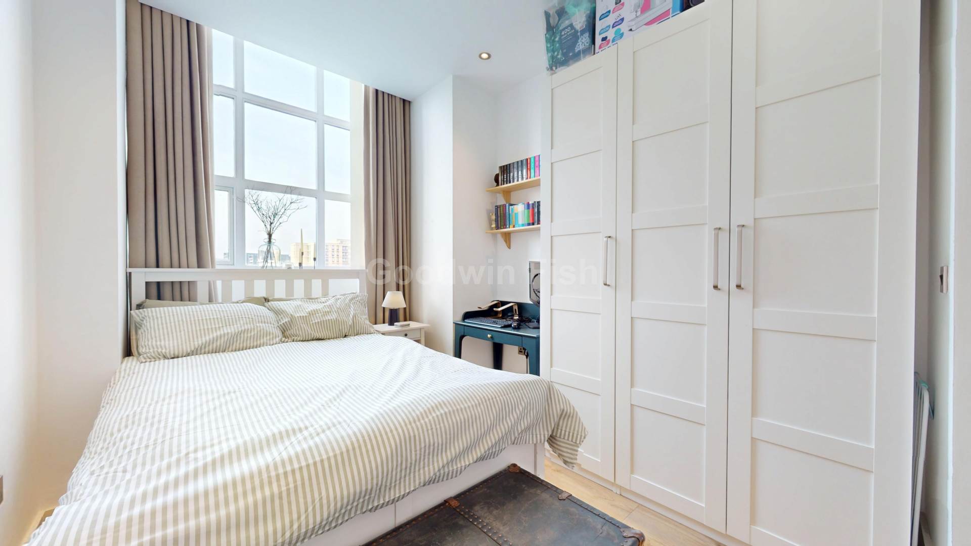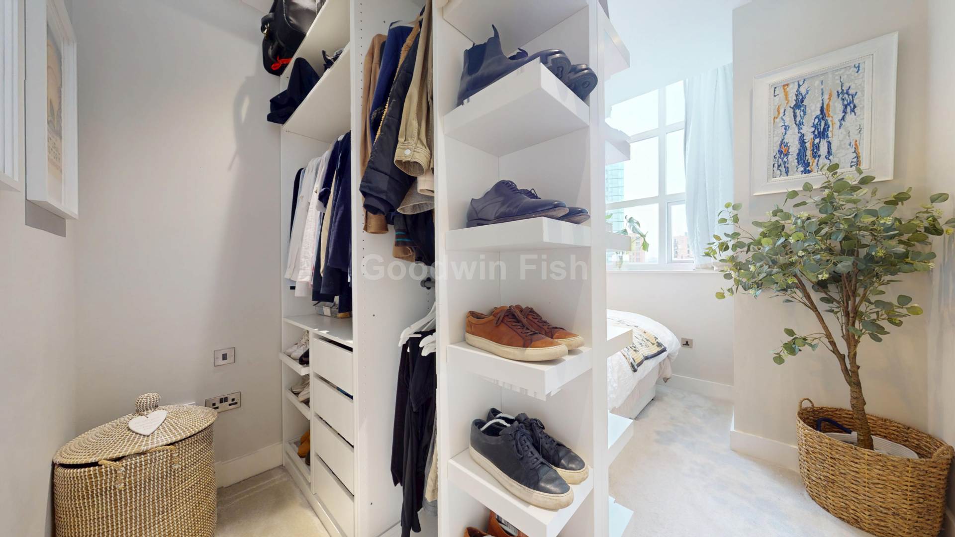 The primary bedroom benefits from an en suite, while the second double bedroom has been thoughtfully styled to create a dressing-room feel, offering versatile space for a home office, guest room, or luxurious boutique-style storage.