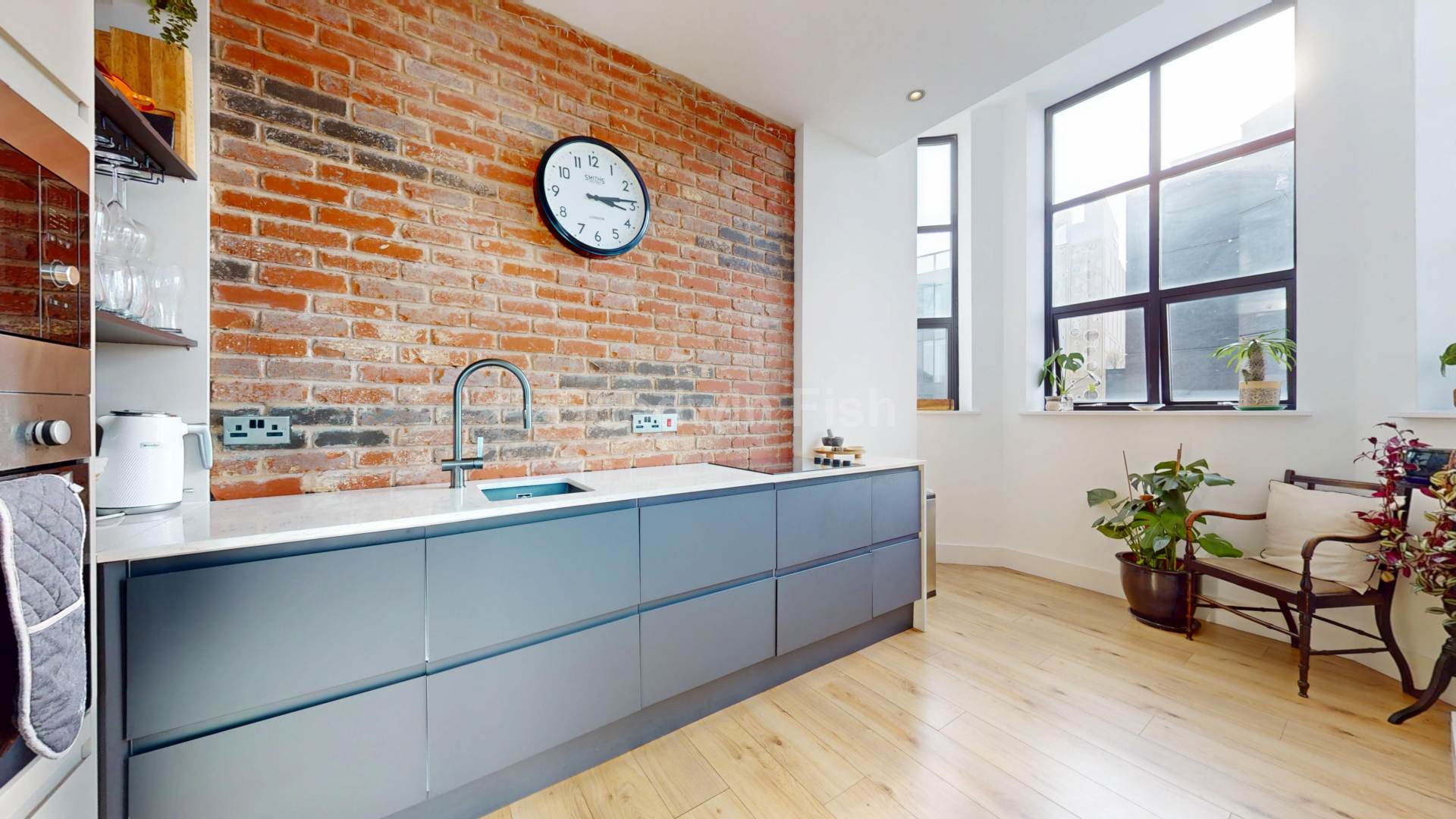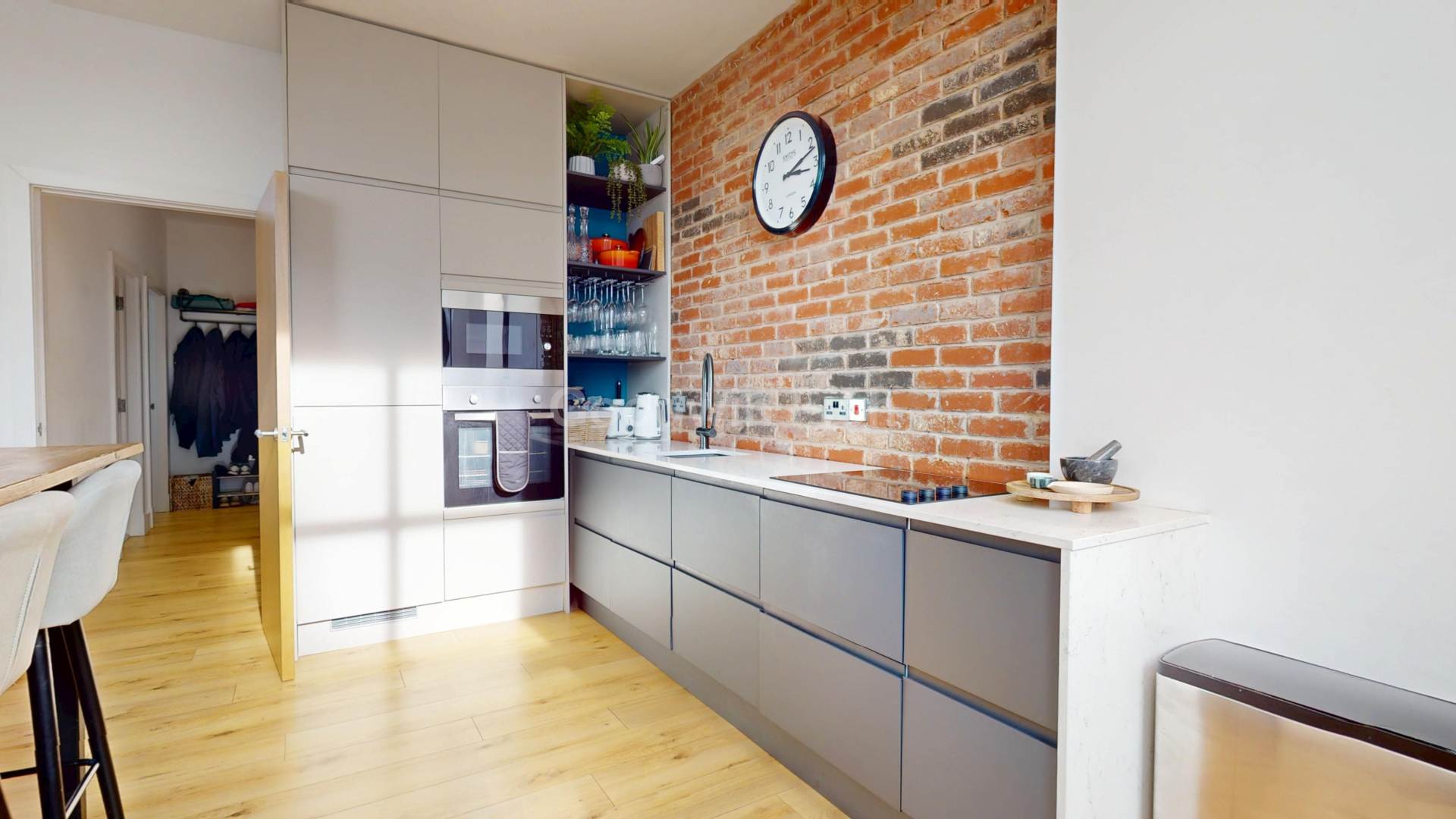 Set on the second floor, this stylish apartment combines modern comfort with the charm of a historic mill conversion. The bright corner aspect fills the open-plan living space with natural light, while the upgraded kitchen with quartz worktops and integrated appliances makes cooking a pleasure.