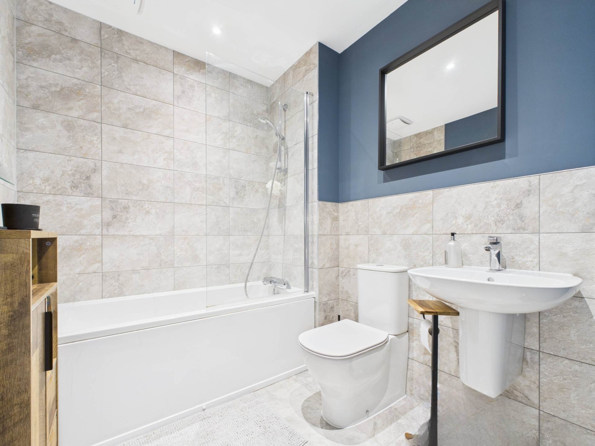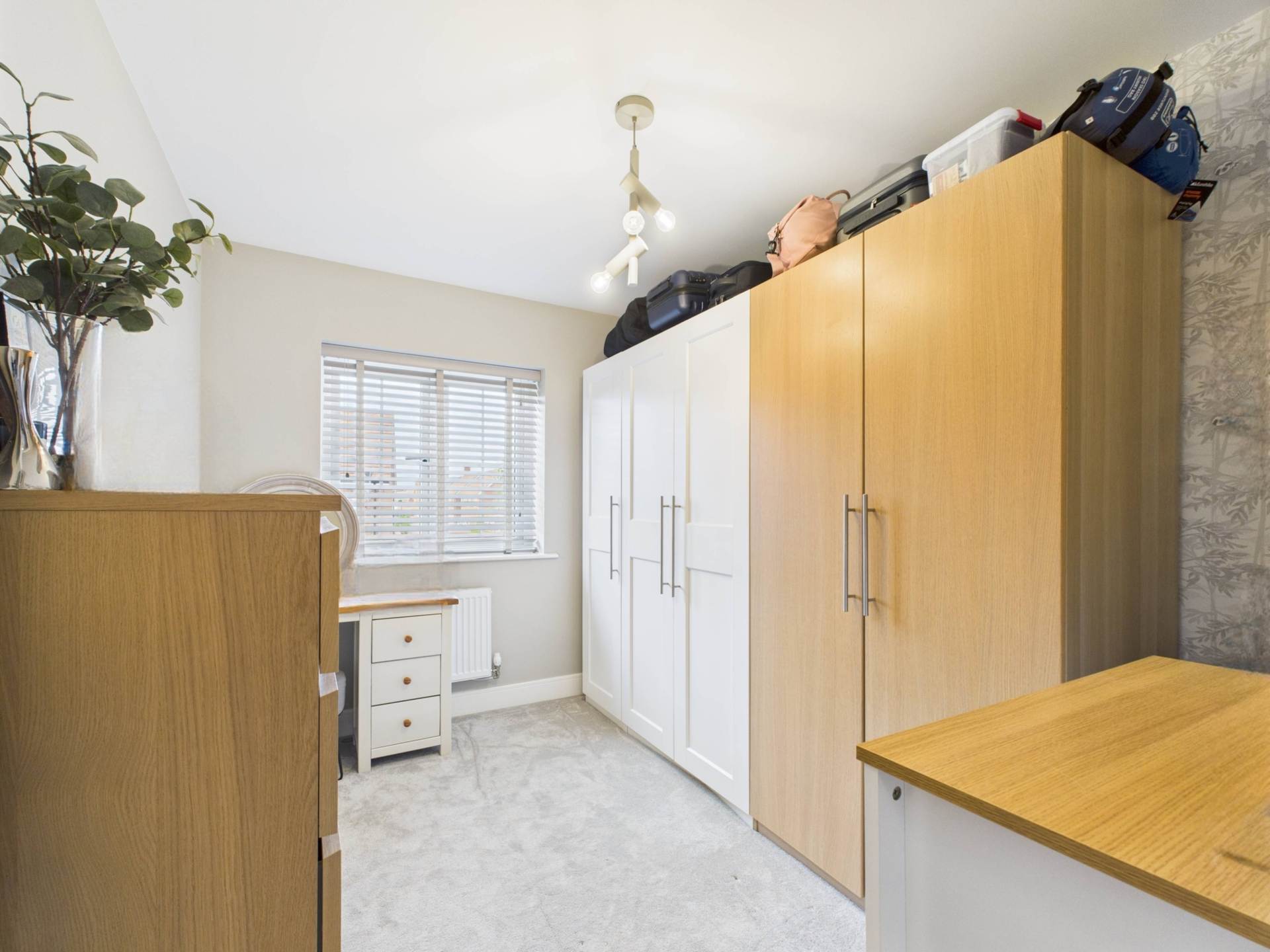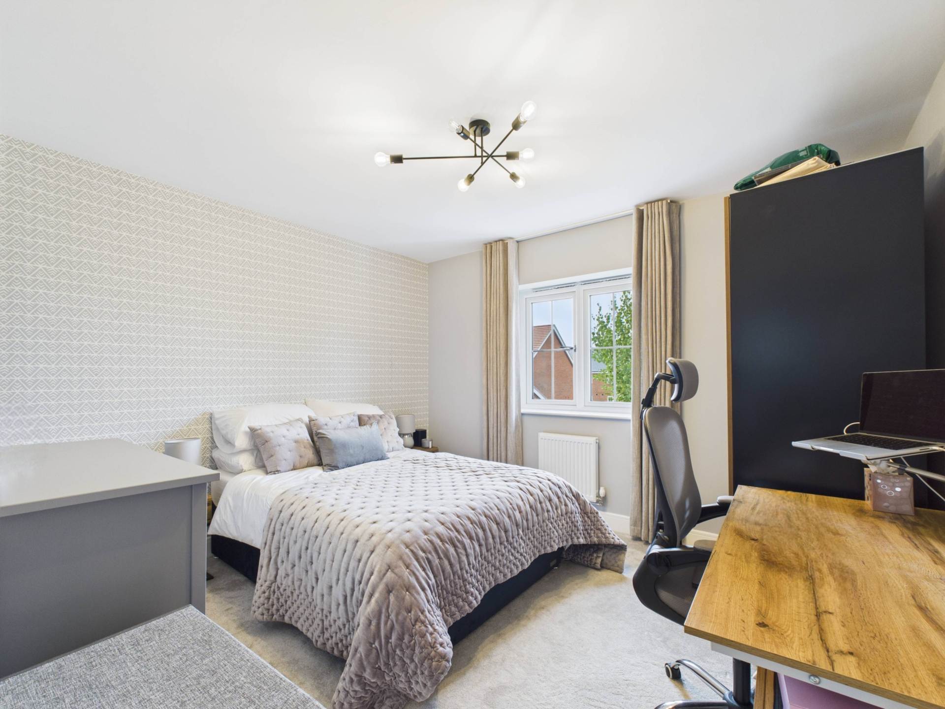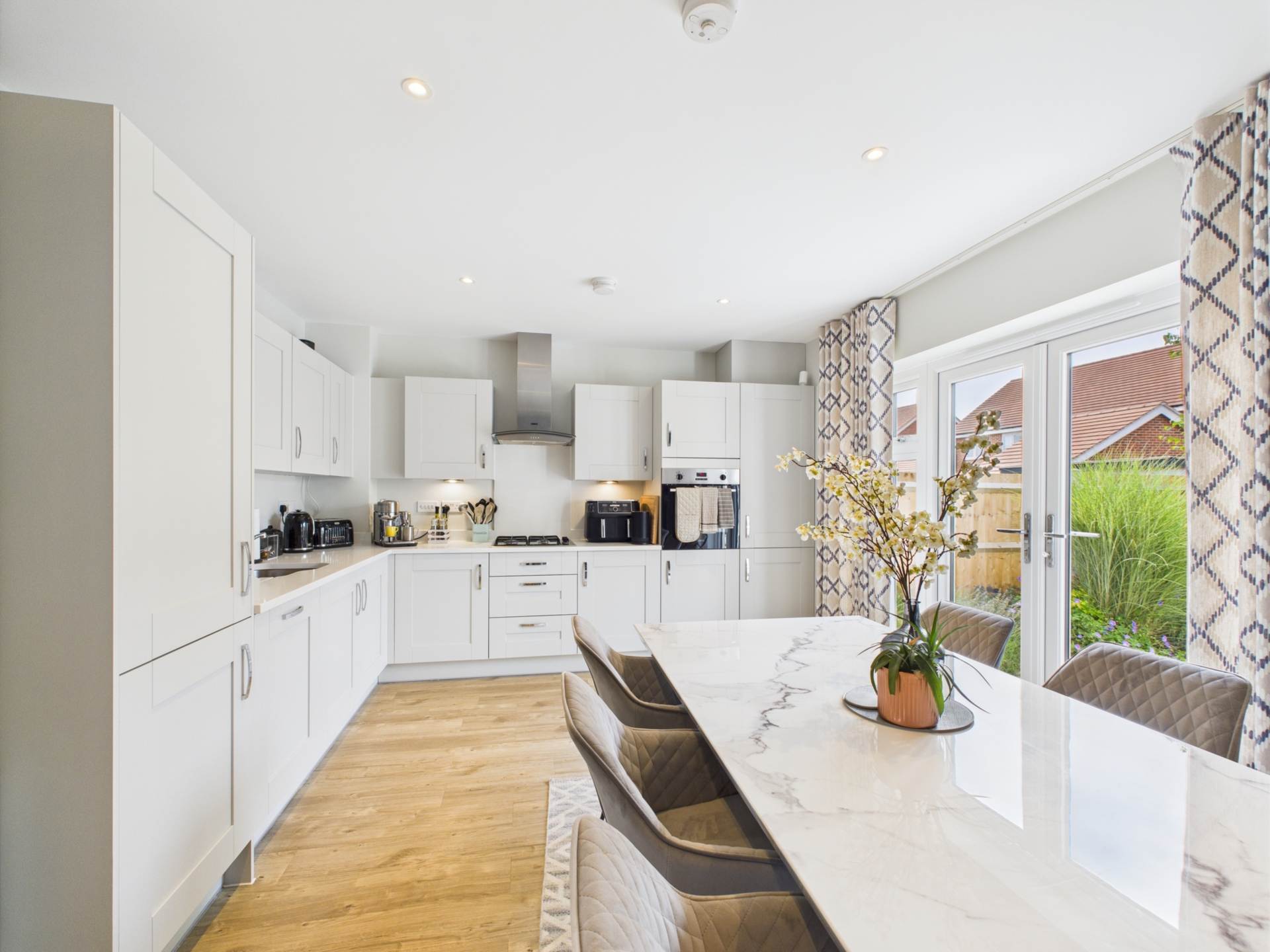 Upstairs, the principal bedroom boasts an en suite shower room, while two further bright and generously sized double bedrooms share a modern family bathroom.