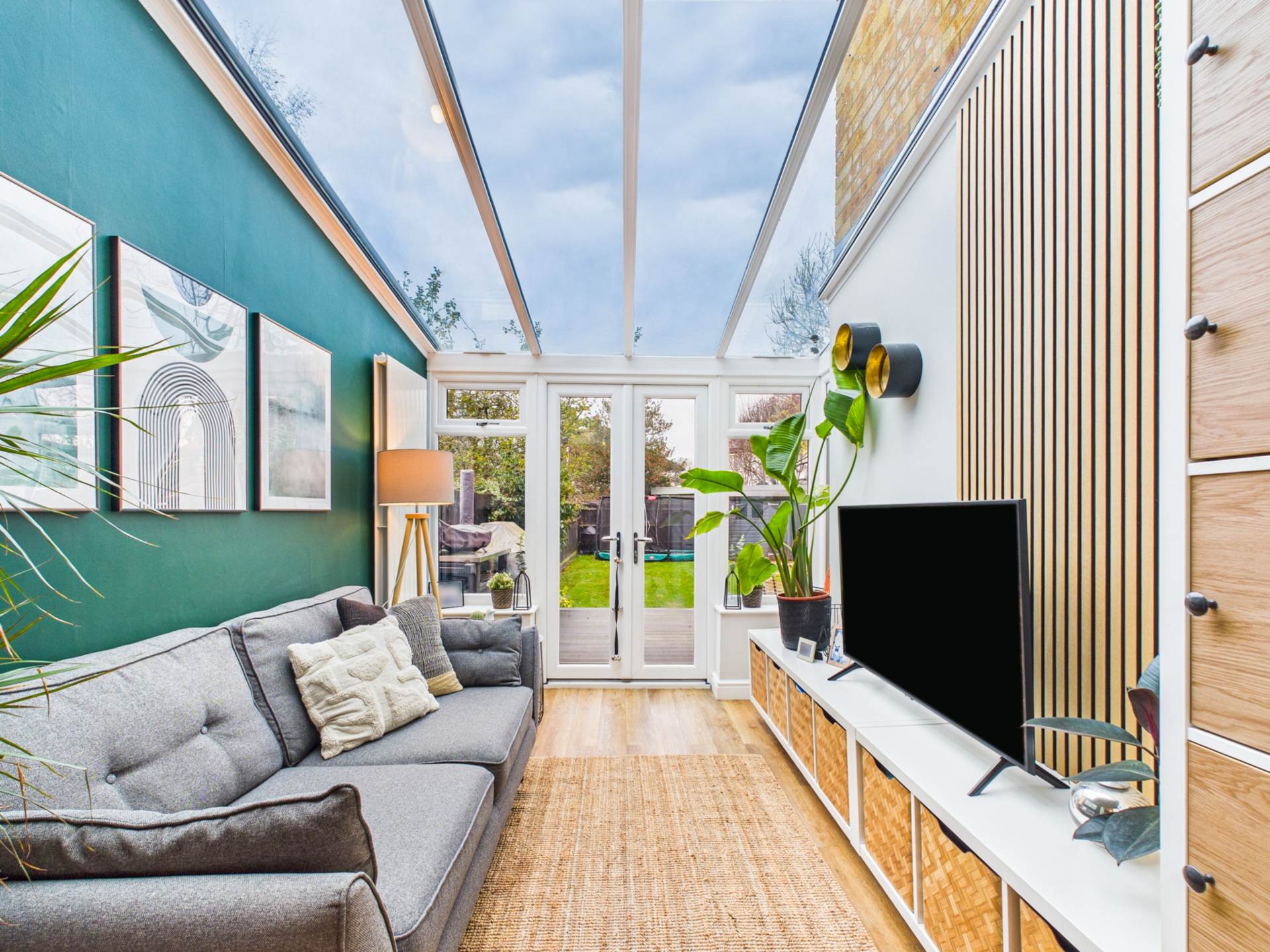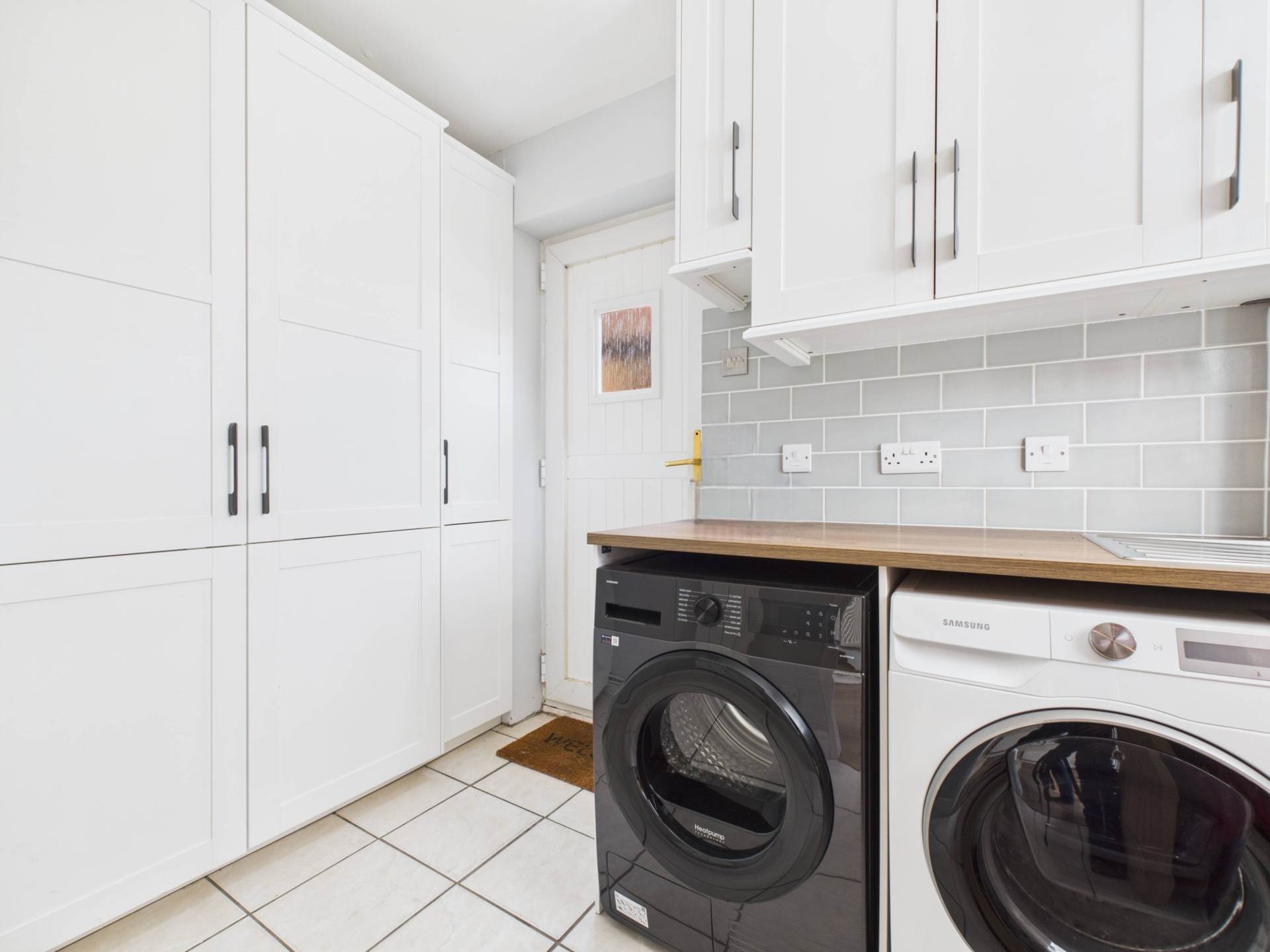 The ground floor also includes a practical cloakroom, a dedicated study perfect for home working, and a useful utility room with external access. A separate, cosy living room provides a peaceful retreat, complete with a log burner and patio doors that lead directly to the rear garden, creating a seamless indoor-outdoor flow.