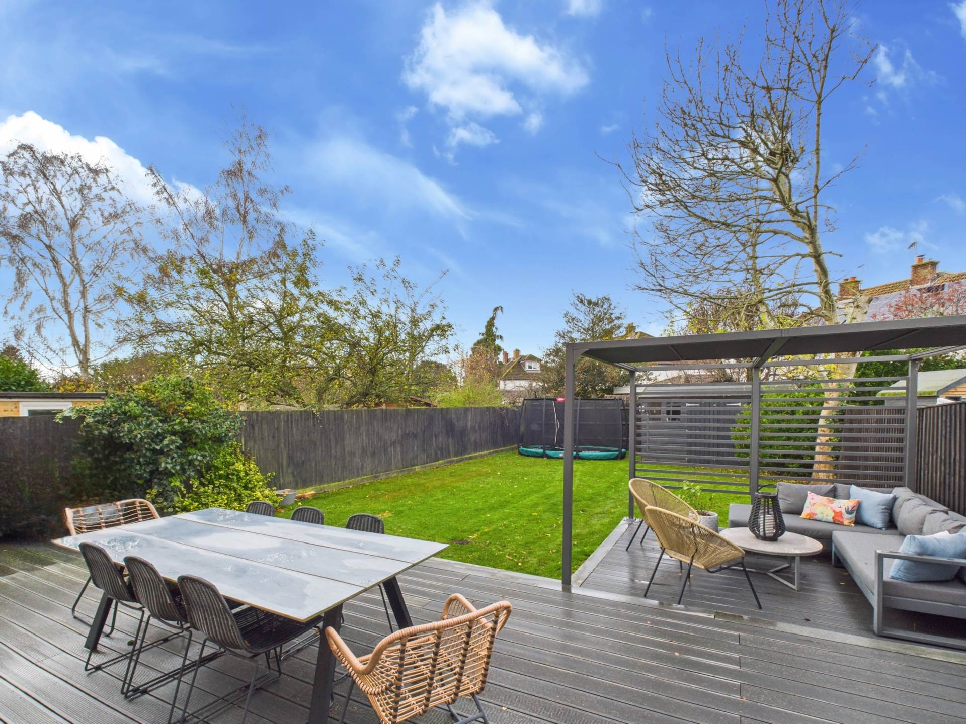 The rear garden has been thoughtfully landscaped with both decked and lawned areas, providing the perfect setting for outdoor dining, children`s play, or simply relaxing in the sunshine.