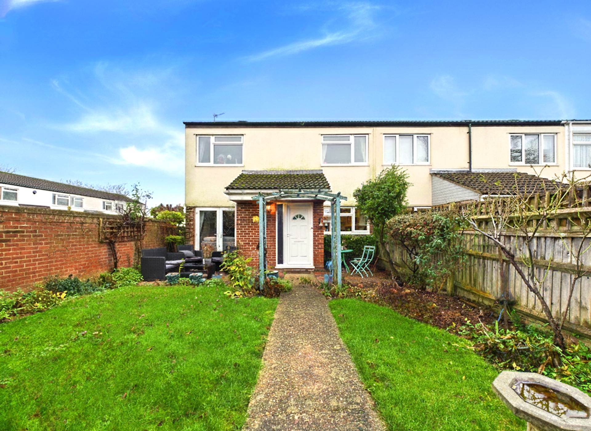 An attractive three-bedroom end-of-terrace family home, full of character and offered to the market chain free, with the added benefit of off-street parking. The property is entered via a welcoming entrance porch,with an abundance of charm. Accommodation includes a spacious dual-aspect living room and a generous kitchen/breakfast room, fitted with a breakfast bar and providing ample space for a dining table, ideal for modern family living.
