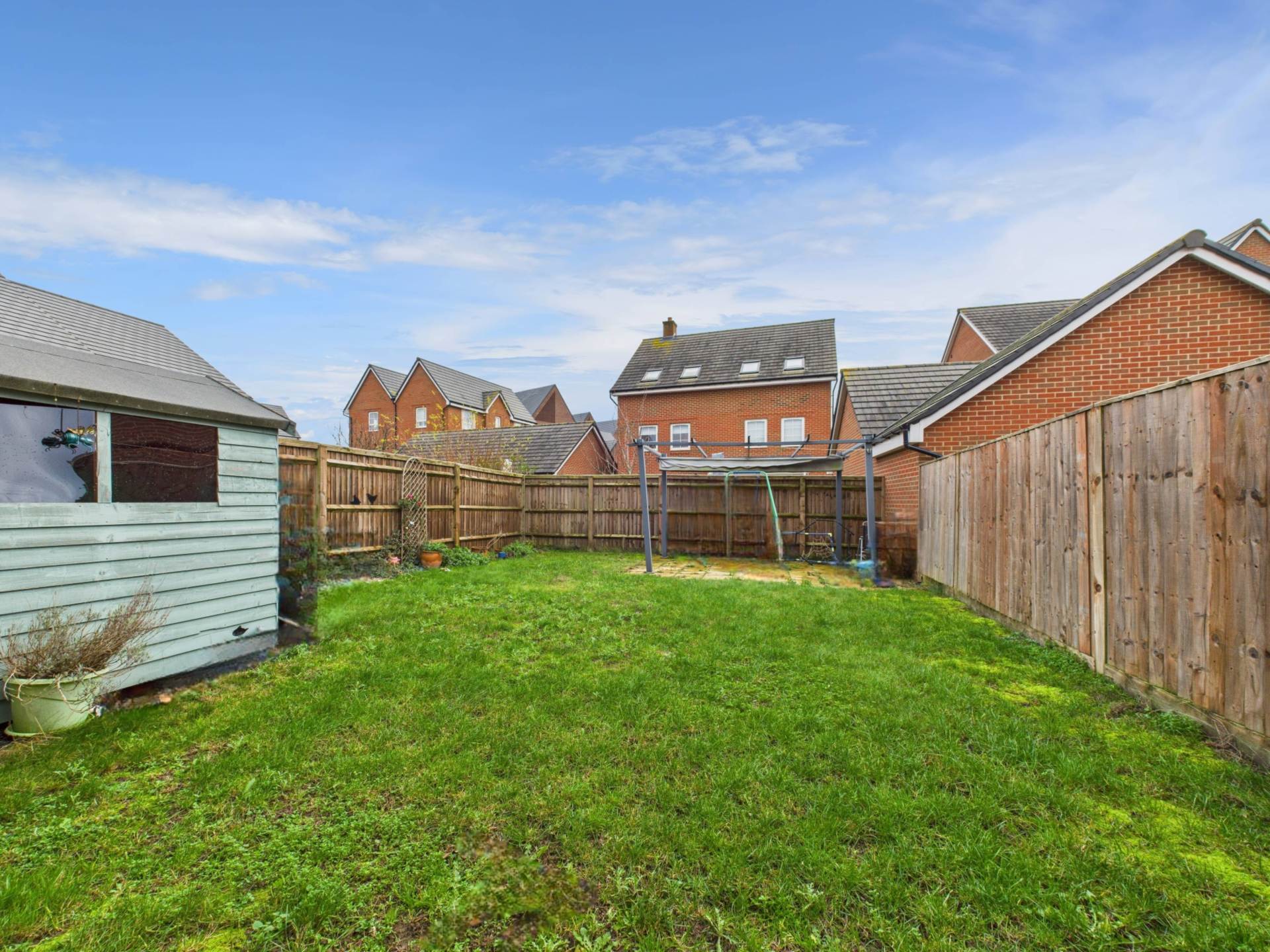 Outside, the property features a private rear garden with a patio seating area, lawn, shed and gated side access leading to the front. To the side of the house, a private driveway provides parking for two cars.