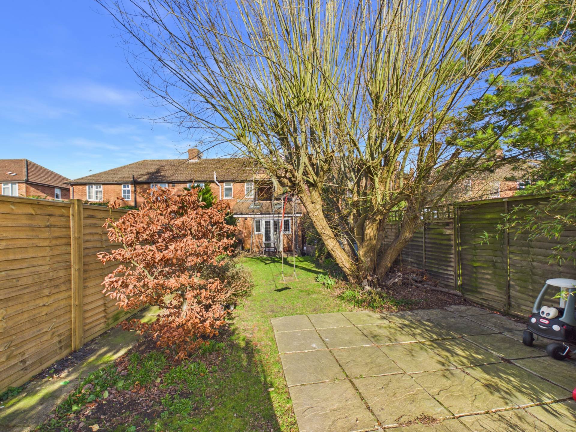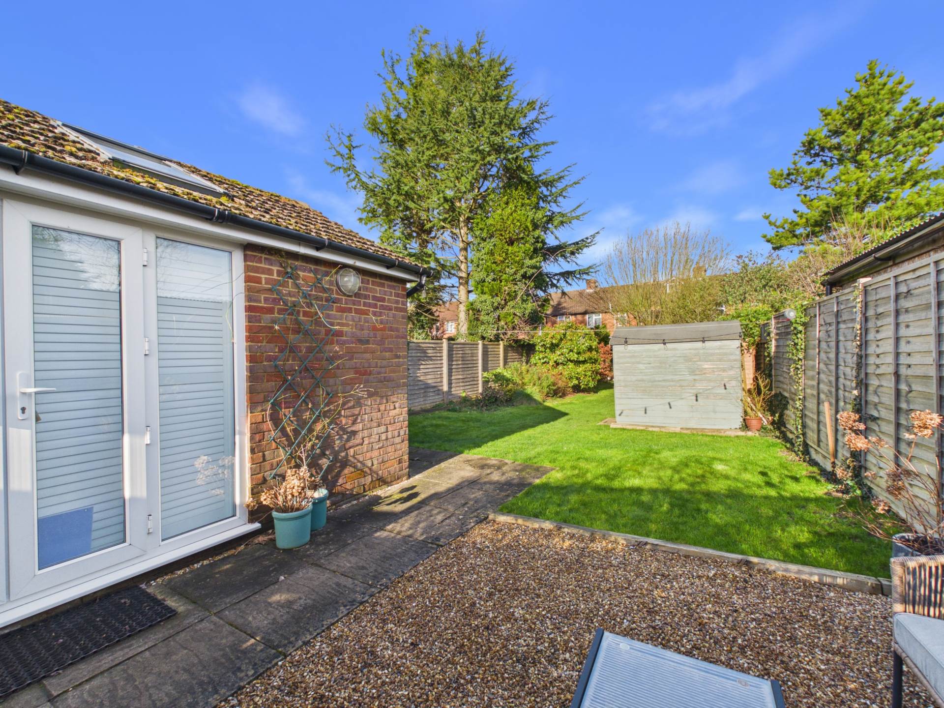 A very well presented two bedroom home situated on this popular residential location in Wendover, with an excellent size rear garden extending to approximately 120 feet long. A hidden feature is the annex building at the foot of the garden, ideal for WFH. The property comprises of entrance hallway, cosy sitting room with fireplace and bay window overlooking the front, spacious, bright and open plan kitchen / dining and family area to the rear with vaulted sky light windows and double doors leading to the rear garden. The first floor enjoys two double bedrooms and shower room. From the main bedroom there are stairs leading up to the converted loft room, which the current owners choose to use as a third bedroom. Outside there is an excellent size southerly facing rear garden. The garden is mainly laid to lawn, with a patio area and plenty of well established trees and shrubs. At the foot of the garden is a large detached annex building with power, light and insulation. The current owner runs a business from these premises. To the front there is driveway parking and an additional space to the rear which is accessed via a service road. An appointment to view this fine home comes highly recommended.