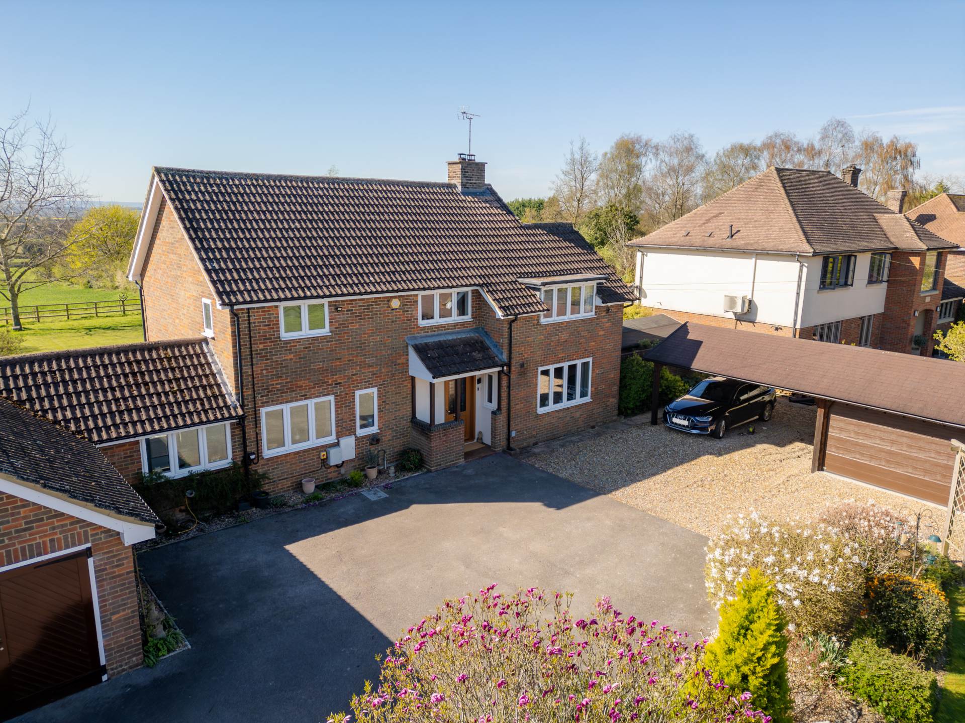 An exciting opportunity to acquire this beautifully presented four bedroom family home on a generous plot of 0.64 acres, with excellent frontage and impressive rear garden with truly outstanding far reaching countryside views.