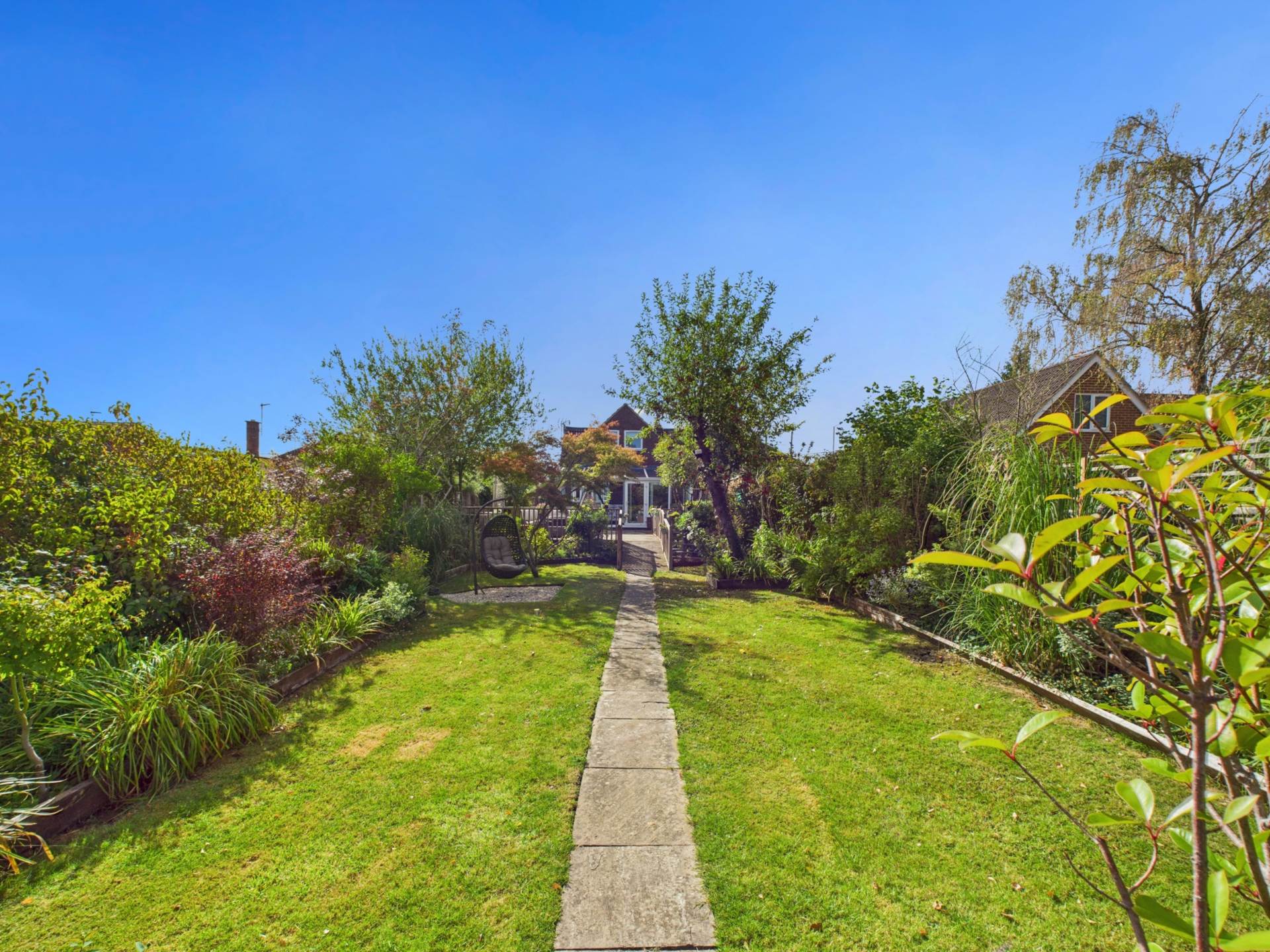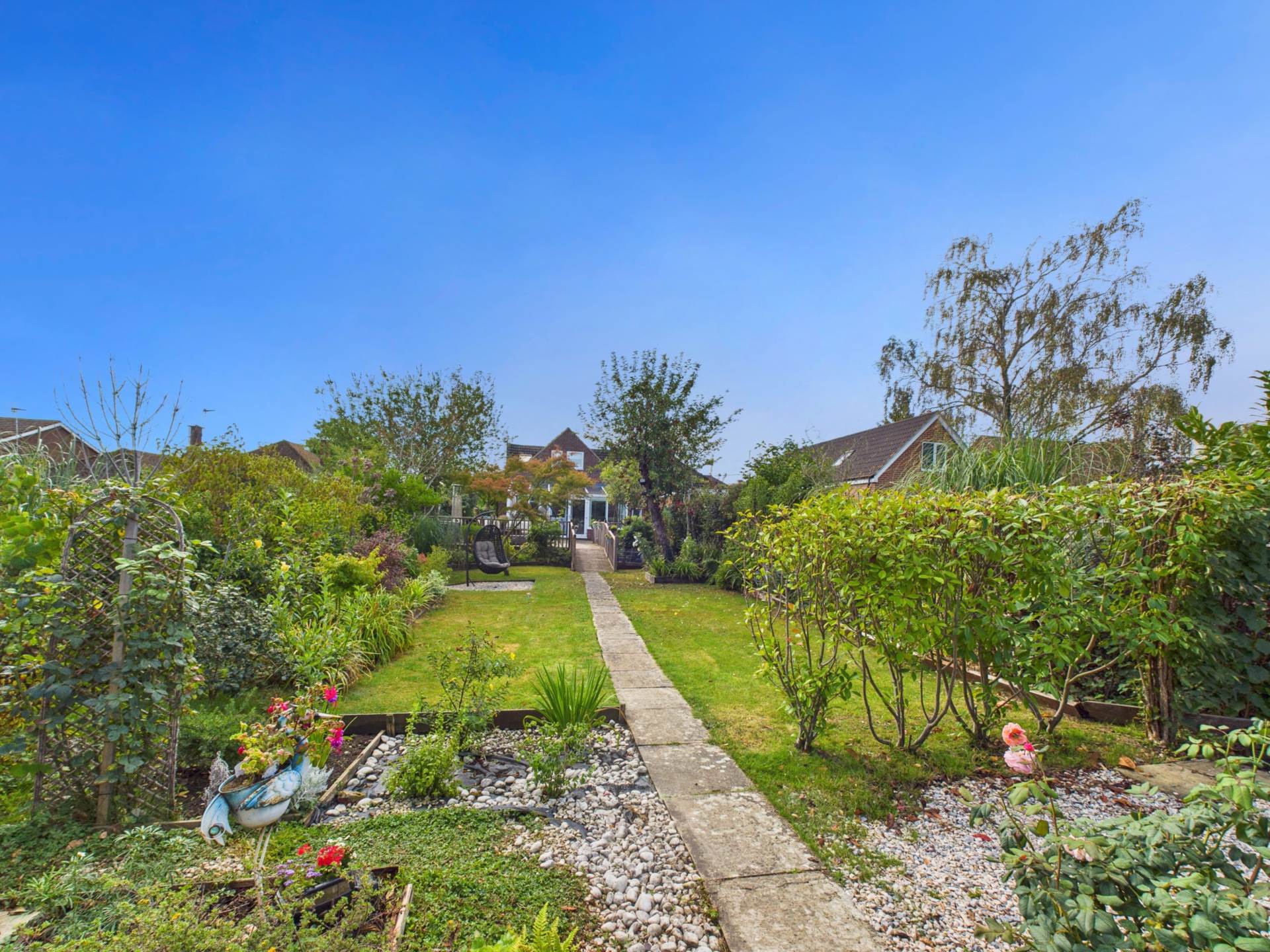 A deceptively spacious four bedroom semi detached chalet bungalow approaching 2,000 sq ft of living accomodation, offered for sale in the village of Weston Turville. The property comprises a welcoming and large reception hall. First on the left is the living room, which benefits from an open fire with attractive fireplace surround and lovely bay window. Behind the lounge is the second sitting room or alternatively a fourth bedroom. To the rear is the very spacious, bright and open plan kitchen / dining area which leads out to the sun room, which is a fantastic area to sit and enjoy the gardens. Further downstairs accomodation includes a utility room accessed from the kitchen, a downstairs shower room and internal pedestrian access to the single garage. The first floor enjoys main bedroom with en suite shower room, dual aspect second double bedroom with views over the garden to the rear, third single bedroom and immaculately appointed family bathroom. Outside the garden enjoys a very private rear garden which extends to approximately 130 foot. The garden is divided into a variety of zones. There is a sunken pond, excellent size decked seating area and a number of laid to lawn areas with mature shrub planting. At the foot of the garden is a large summer house which has a multitude of uses. To the front of the property is an extensive driveway area providing ample off street parking and an EV car charging point. An appointment to view comes highly recommended.