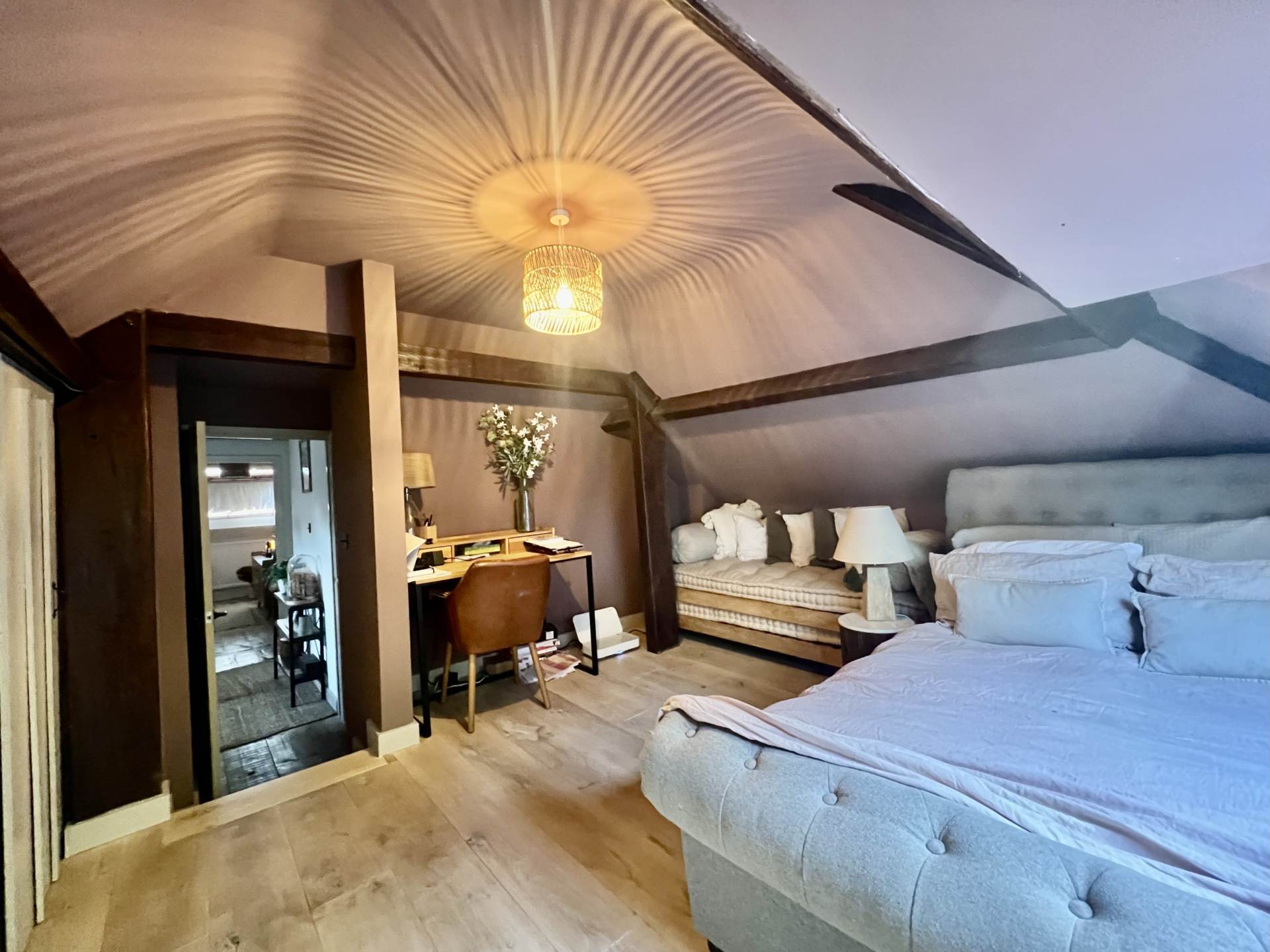 The main bedroom is conveniently located on the ground floor and benefits from a stylish recently refurbished en suite. A second bedroom is currently used as a dressing room but could easily serve as a nursery or be reinstated as a fifth bedroom.