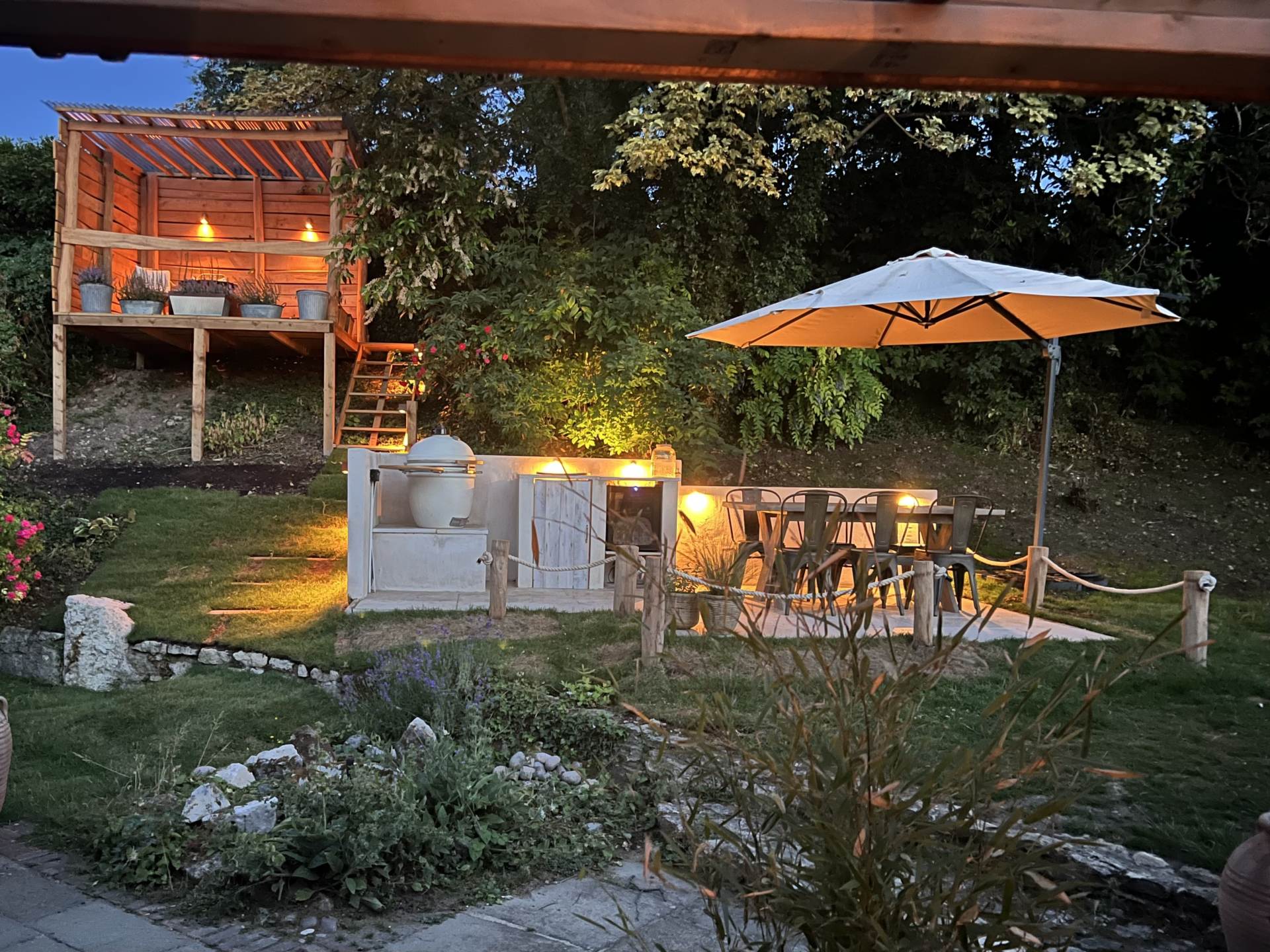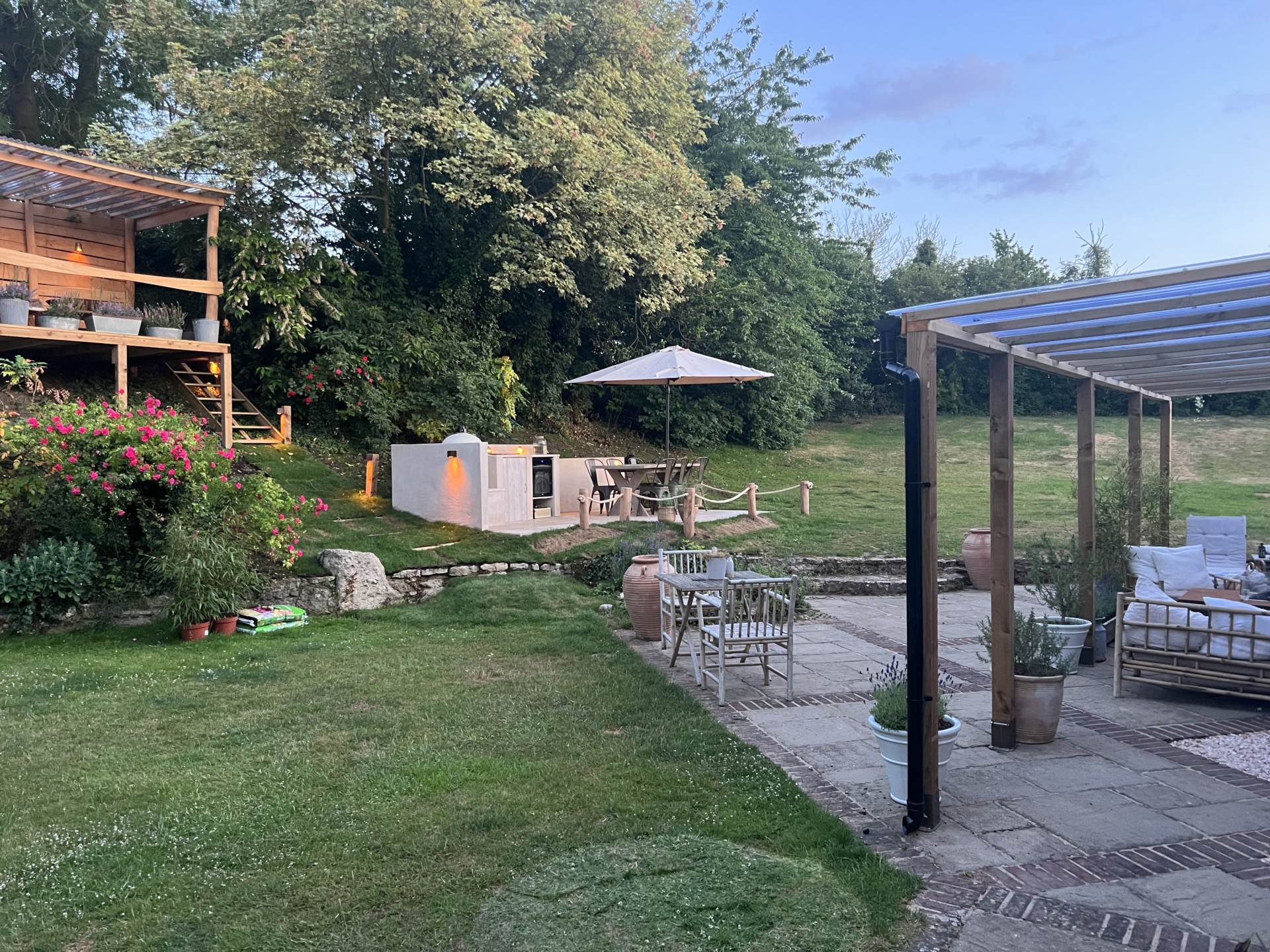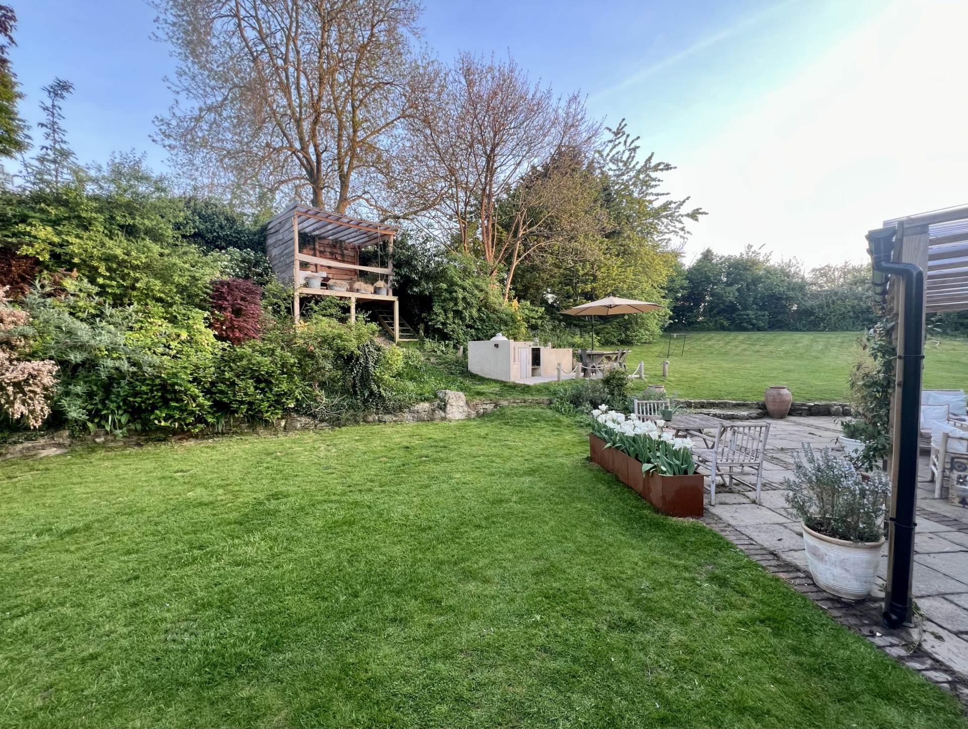 Externally, the property occupies a generous corner plot extending to approximately 0.3 acres. The wraparound garden enjoys a sunny southerly aspect and offers a high degree of privacy, with mature trees, shrubs, and two lawned areas. Thoughtfully landscaped for outdoor living, the garden features a covered terrace ideal for al fresco dining, a dedicated barbecue patio, and a raised covered upper deck, the perfect spot to take in the evening sunsets and the distant views towards the hills of Upper Winchendon.