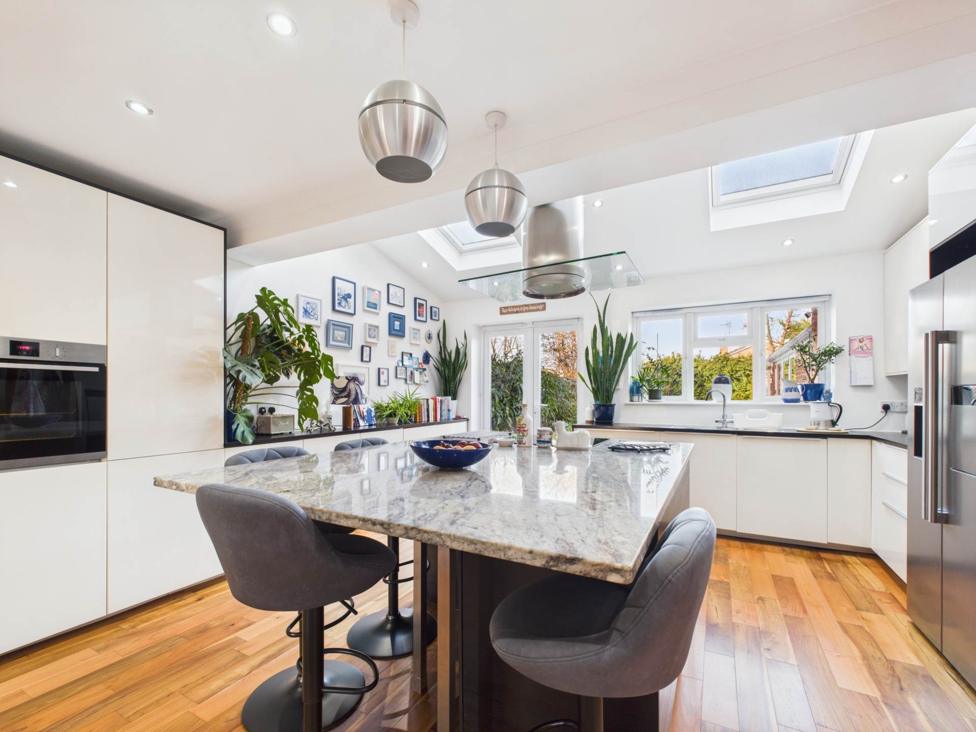 An extremely well presented three bedroom semi detached home with open plan kitchen / dining area and outside office/living room, situated on this quiet no-through road in the heart of Weston Turville. The accommodation comprises entrance hall, good size living room with wood burner stove and bay window, leading through the heart of the home, the wonderful open plan kitchen / dining area, with large central island and an excellent range of storage cupboards, as well as vaulted ceiling with sky lights, making for a bright, airy and spacious feel. The kitchen is also fitted with integrated appliances including two Neff/Zanussi electric ovens, Whirlpool dishwasher and microwave. There is also a downstairs cloakroom. The first floor enjoys two double bedrooms, third single bedroom, separate family bathroom with attractive stand alone bath, twin basins and walk in shower. Outside there is a very private rear garden and annexed building which serves as an outside office/living area/gym area. To the front there is driveway parking. An appointment to view comes highly recommended.