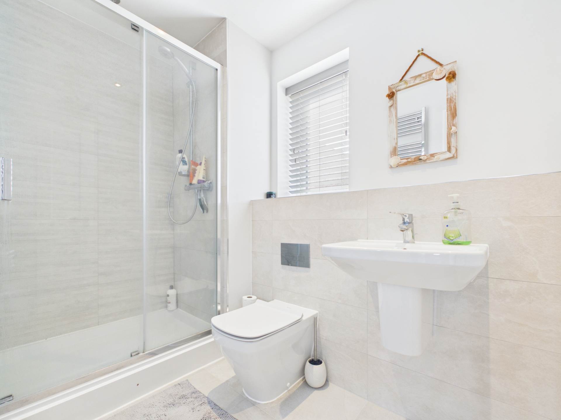 Upstairs, a spacious landing leads to the luxurious principal suite, enjoying far-reaching views. This serene retreat benefits from built-in storage and a beautifully appointed en-suite featuring both a freestanding bath and a separate shower. The second bedroom also enjoys the advantage of its own en-suite shower room, while two further double bedrooms are served by a contemporary family bathroom. A substantial landing storage cupboard completes the accommodation.