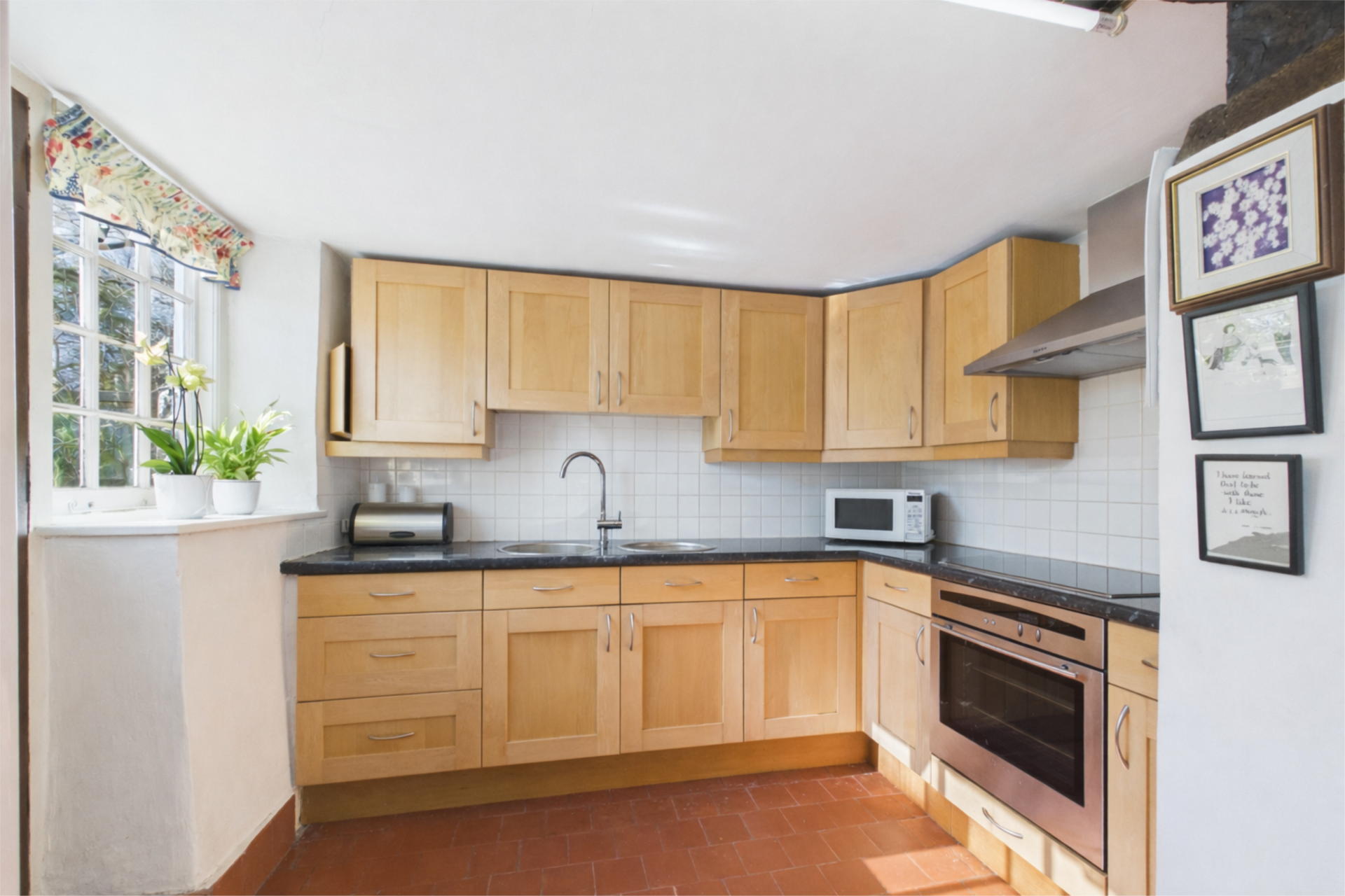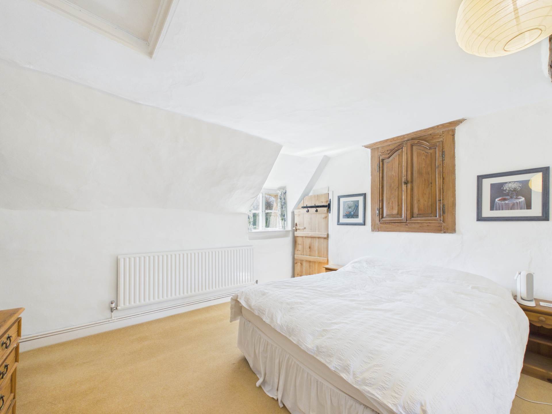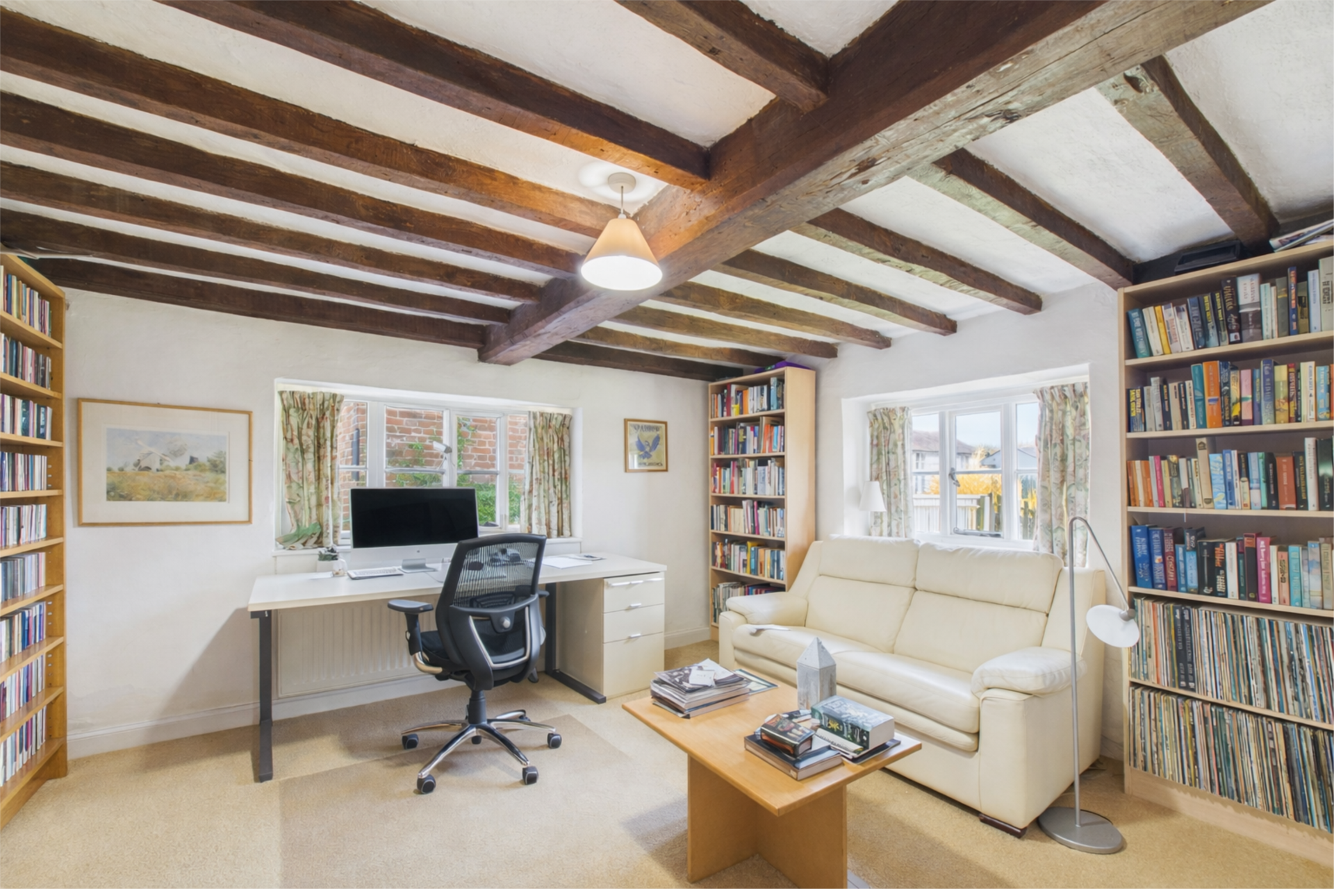 The property is entered via a welcoming entrance hall, where an original bread oven provides an immediate sense of history and authenticity. From here, the accommodation unfolds into a series of elegant and characterful reception spaces. The principal living room is a warm and inviting setting, centred around a wood-burning stove and enjoying picturesque views over the gardens and rose beds. A second reception room, currently utilised as a home office, offers excellent flexibility and could serve equally well as a ground floor bedroom, playroom or additional sitting room, with convenient access to a downstairs WC. A useful understairs cupboard, currently arranged as a wine store, adds further practicality.