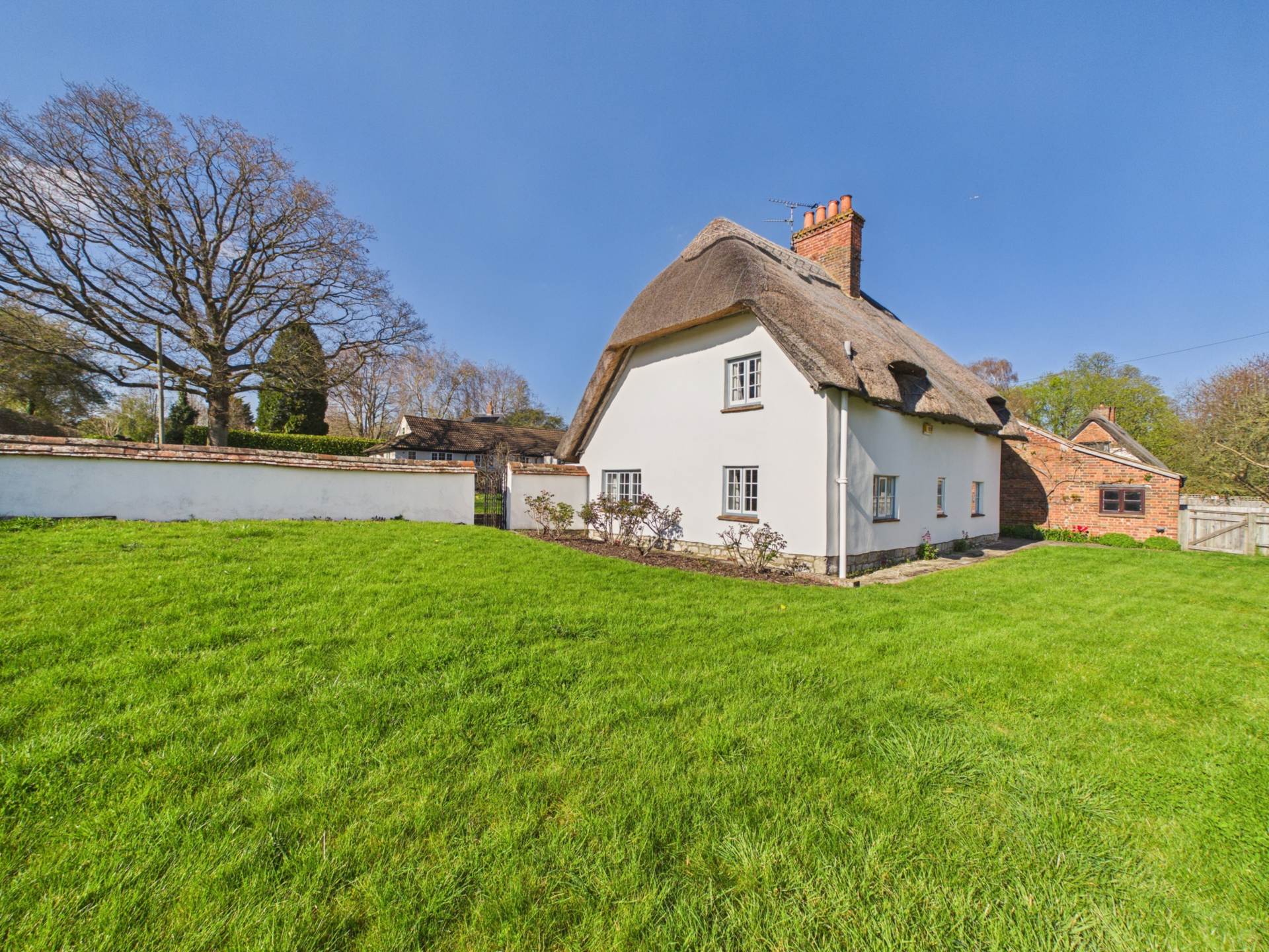 A truly enchanting Grade II listed thatched cottage, formed from the sympathetic conversion of three period cottages into one substantial and beautifully balanced family home, located in the heart of the sought-after Buckinghamshire village of Dinton. Rich in heritage and character, this exceptional residence seamlessly blends historic charm with versatile modern living, all set within delightful wrap-around gardens.