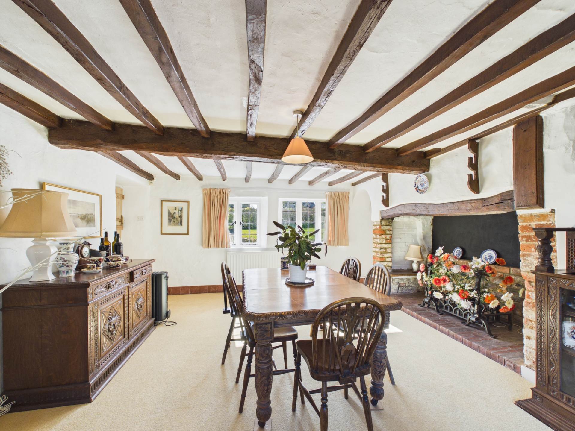 At the heart of the home lies a stunning dining room, showcasing exposed beams and a magnificent inglenook fireplace complete with original bread oven and spice cupboard, ideal for entertaining. This flows through to a beautifully arranged open-plan kitchen/dining room, also featuring a fireplace and designed for both everyday family life and hosting. The kitchen provides direct access to the gardens, a separate utility room, and an additional staircase leading to the first floor, enhancing the home`s versatility and flow.