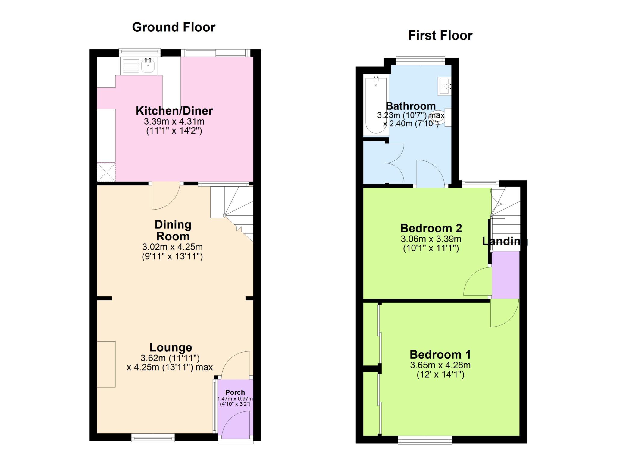 To the first floor are two large double bedrooms giving access to an impressive sized fitted bathroom with potential to be a four piece suite.