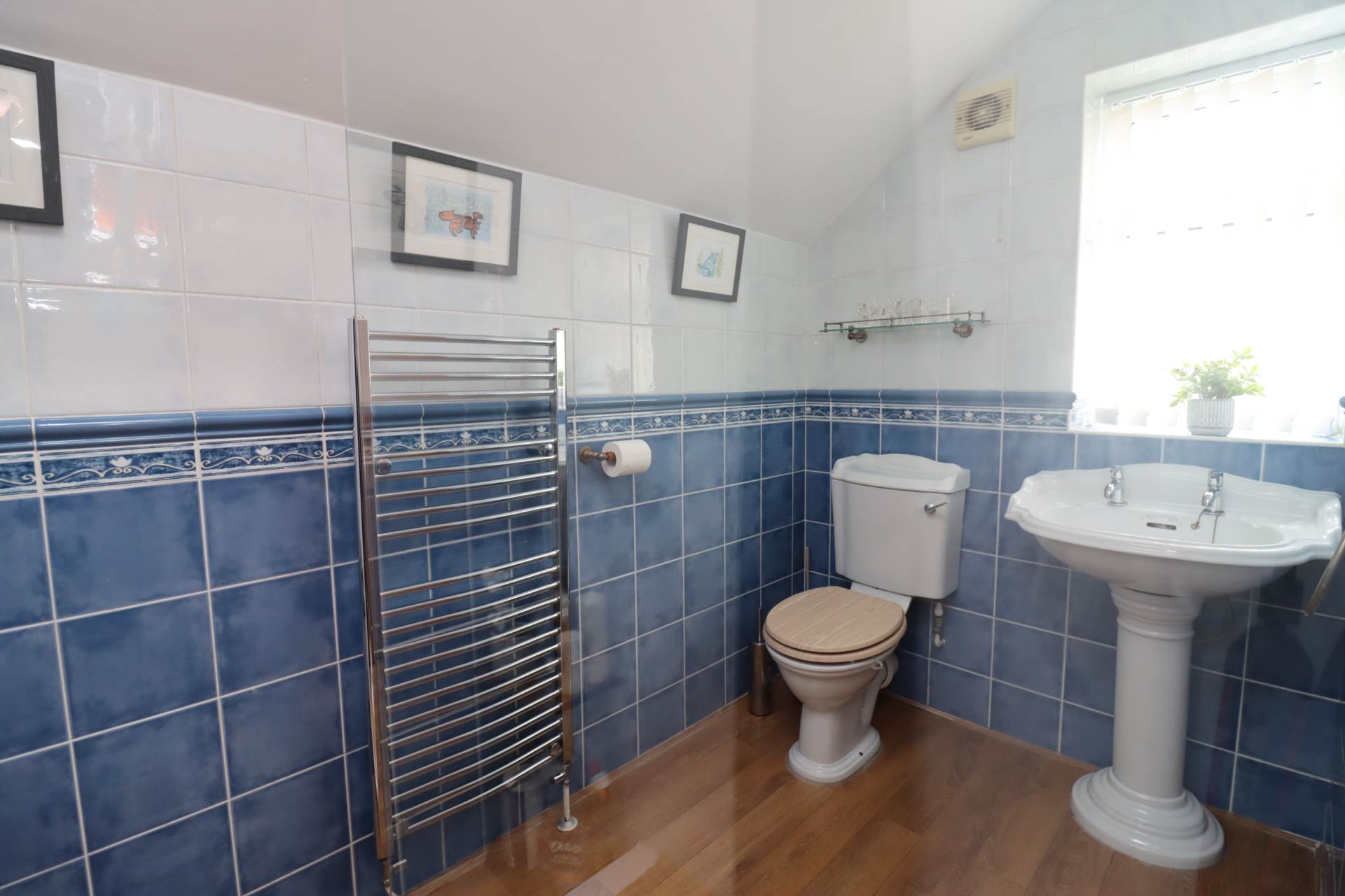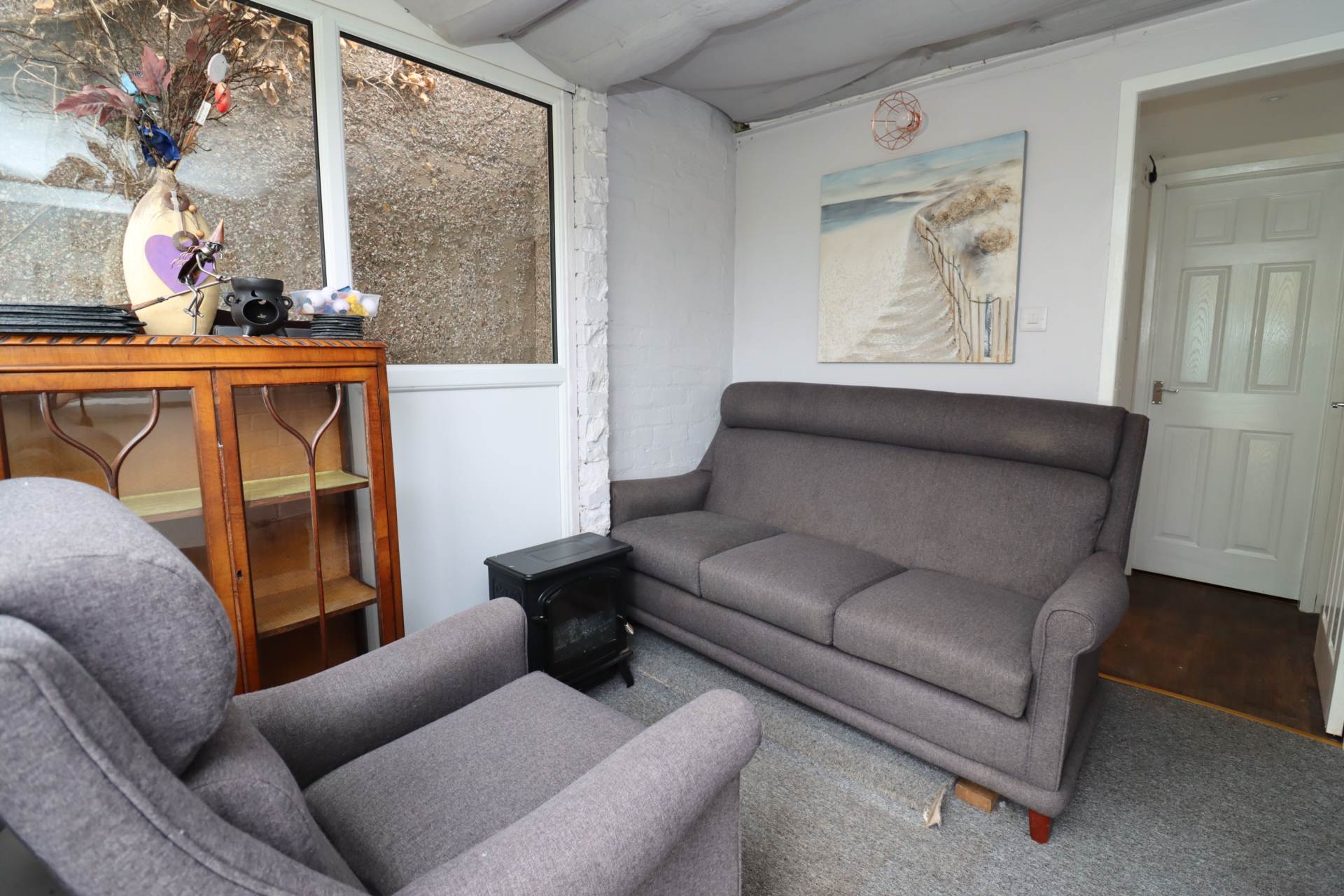 The country cottage style kitchen adds charm and character, with a door leading through to a small additional sitting room perfect as a snug, playroom, or home office. A useful inner hallway gives access to a downstairs WC and basin, with potential to convert into a convenient shower room.