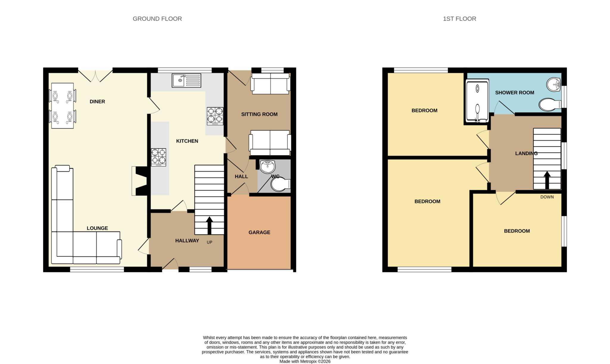 Upstairs, the home offers three bedrooms along with a modern shower room, making it ideal for growing families.