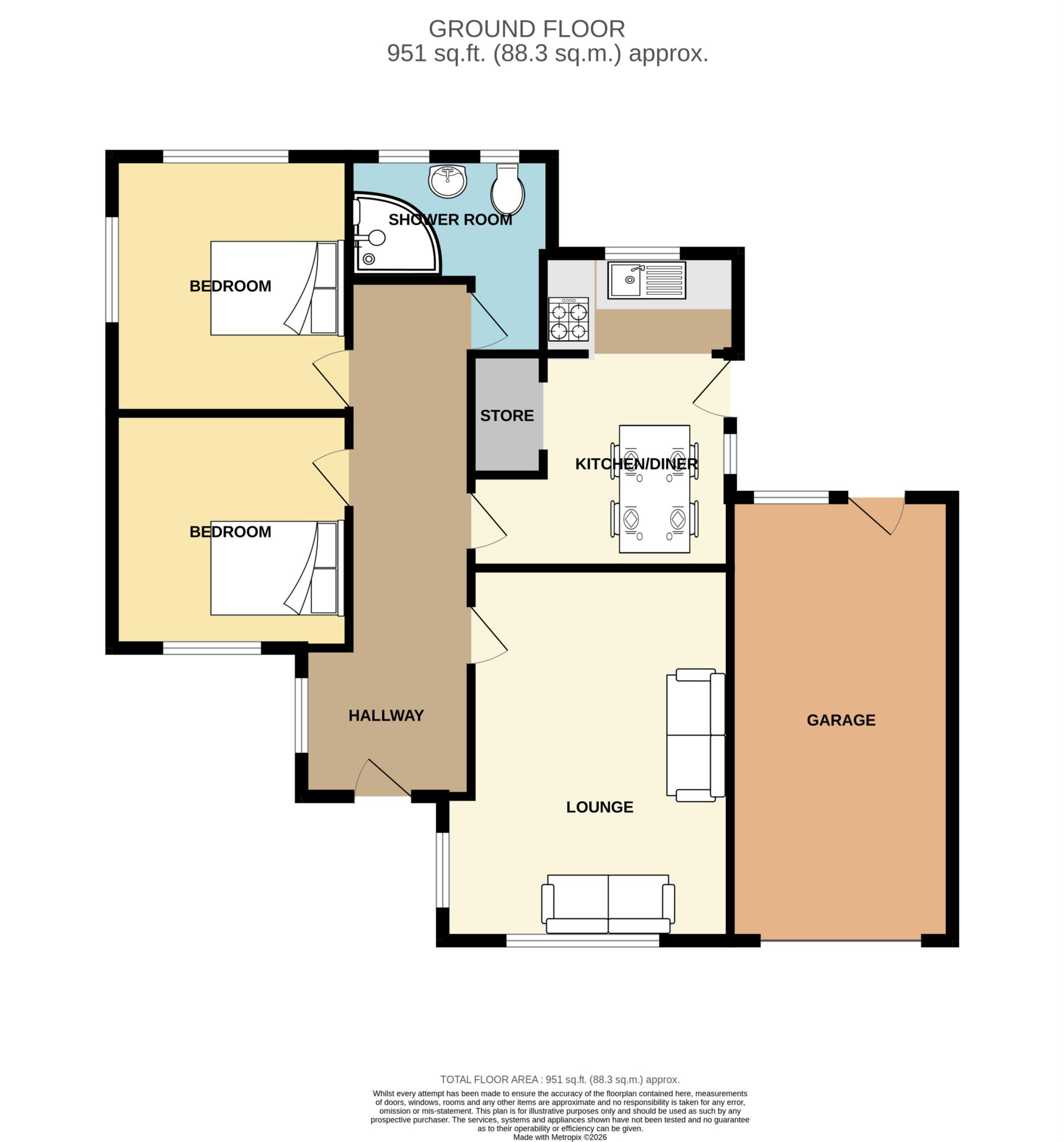 Attractively presented throughout, this impeccable bungalow offers well-planned and comfortable accommodation ideal for those looking to downsize. The layout briefly comprises a welcoming entrance hallway, a bright lounge, a modern kitchen diner, two well-proportioned bedrooms, and a contemporary shower room. Externally, the property benefits from a garage, driveway and a generously sized rear garden, perfect for relaxing or entertaining.