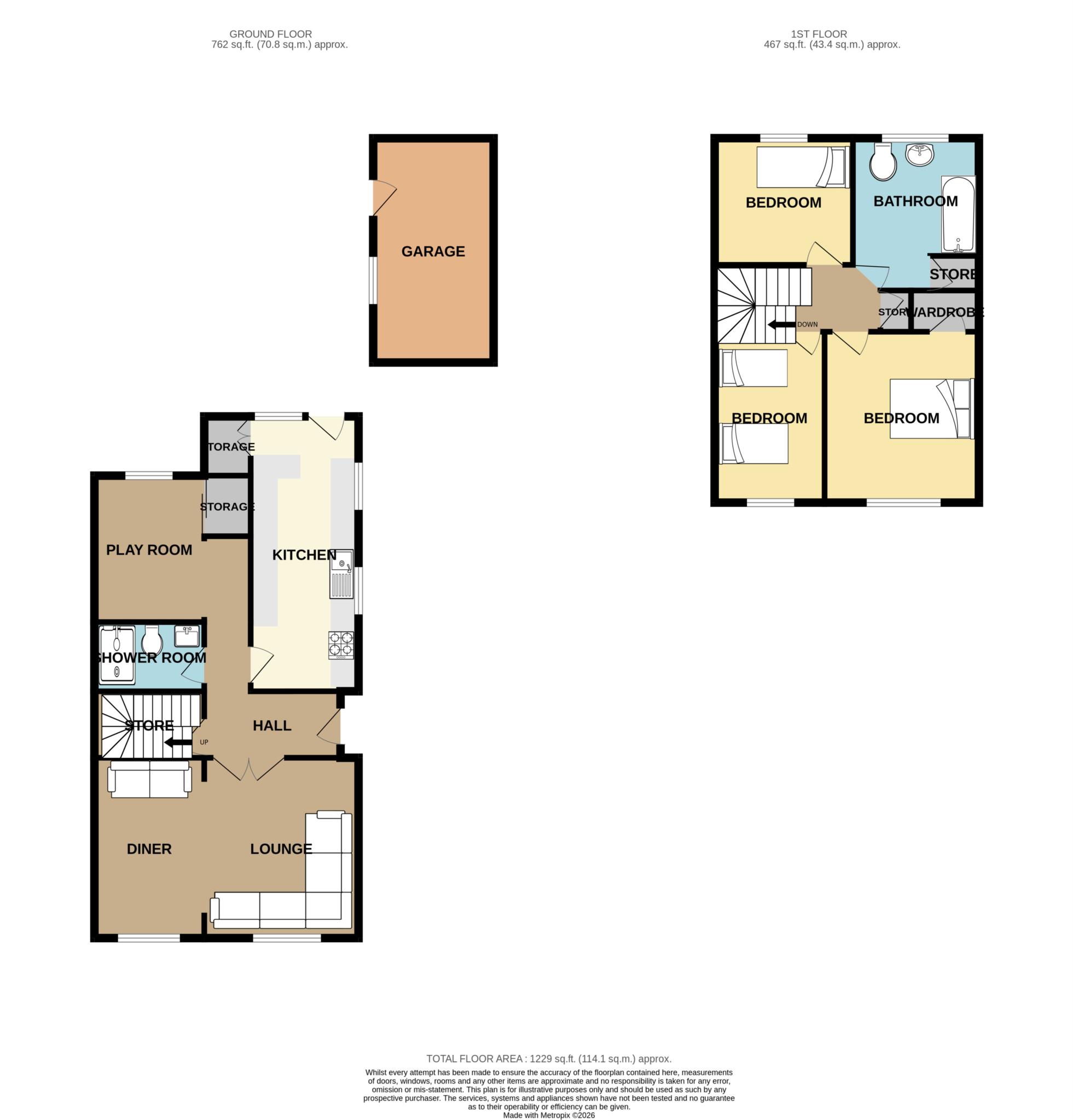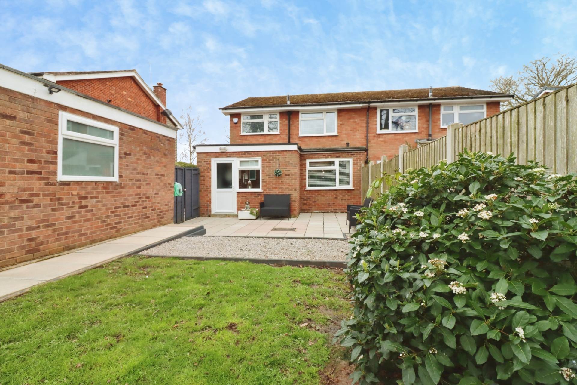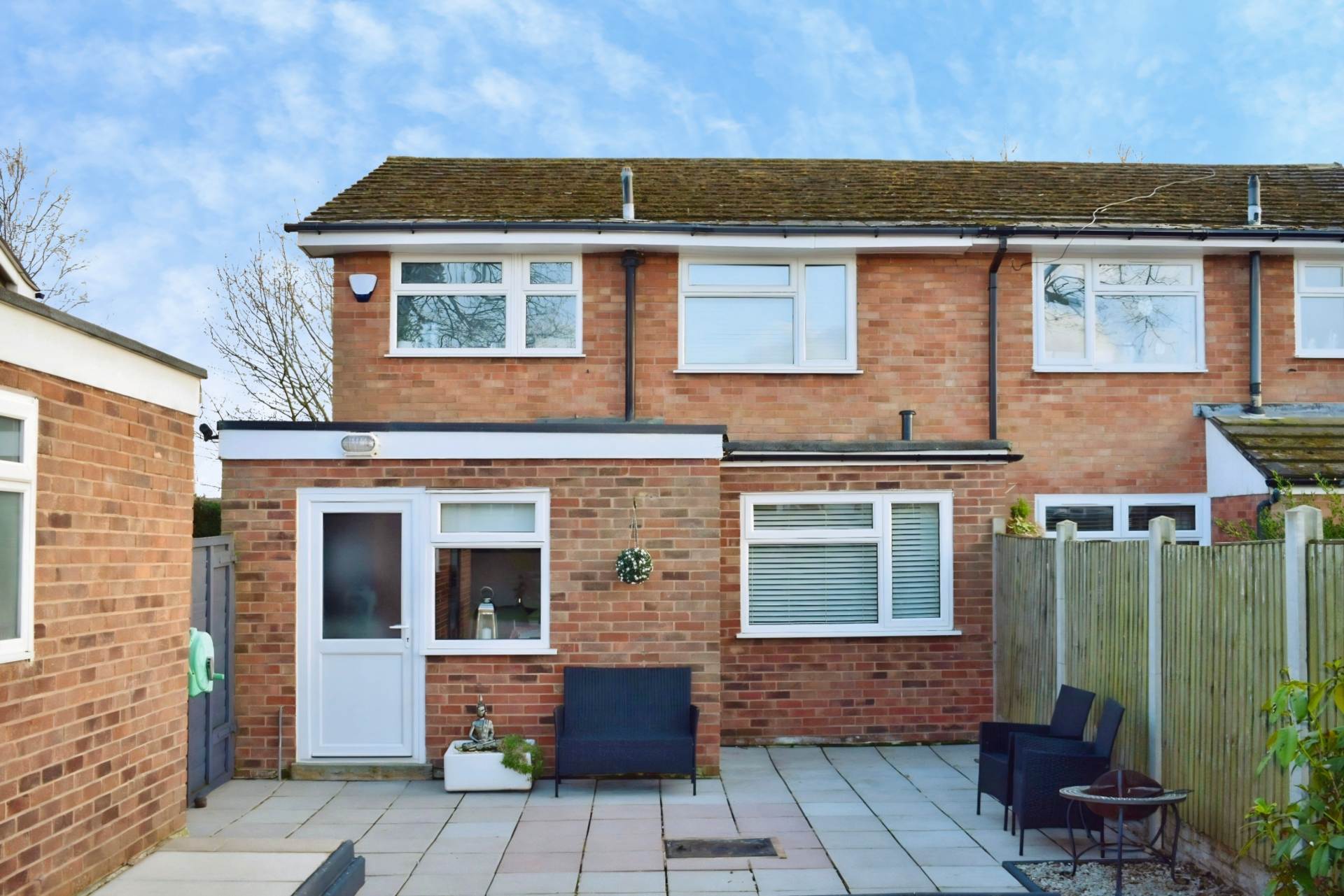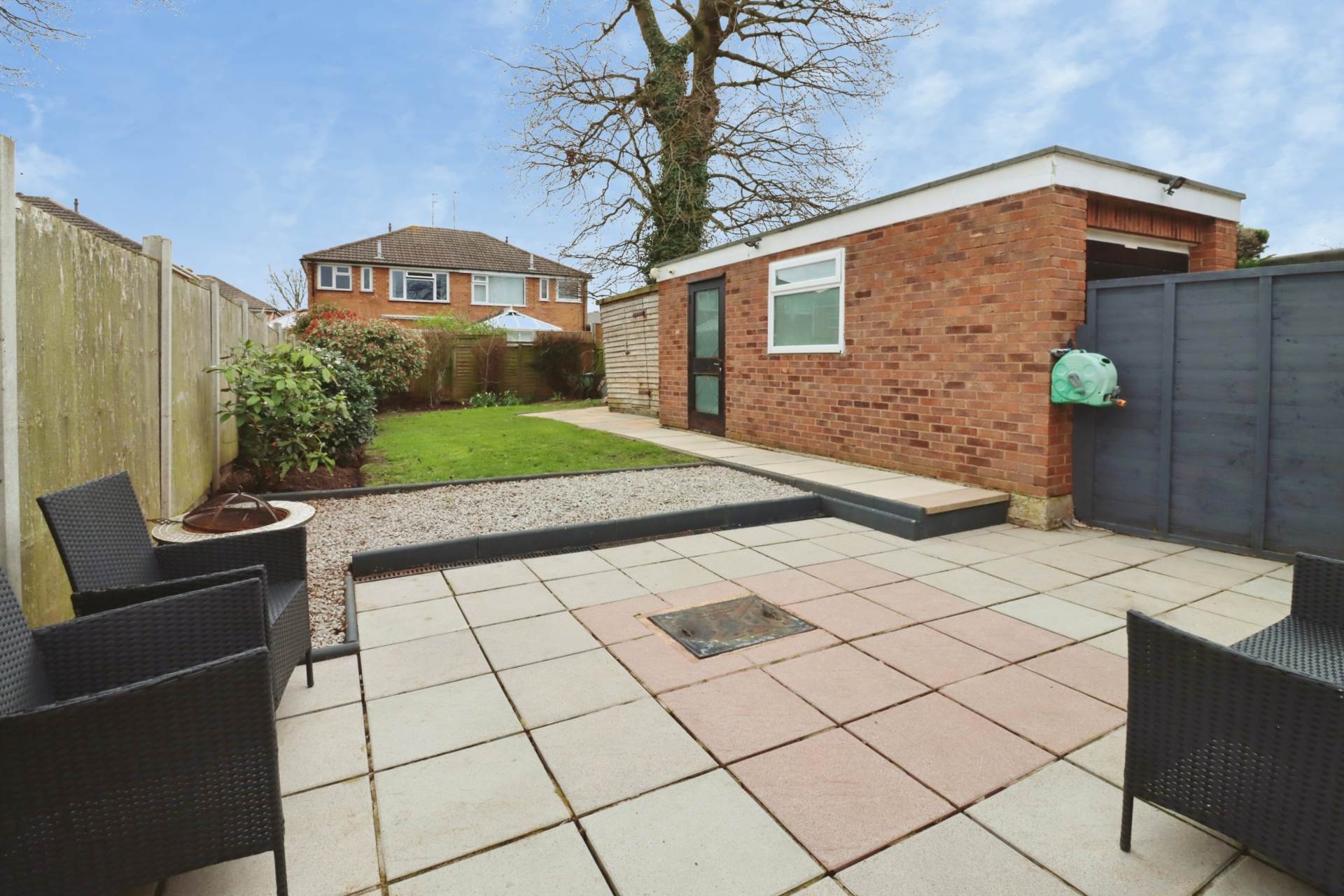Externally, the rear garden offers a wonderful space to unwind, complete with a seating area ideal for outdoor dining and a garage providing additional storage or parking options.