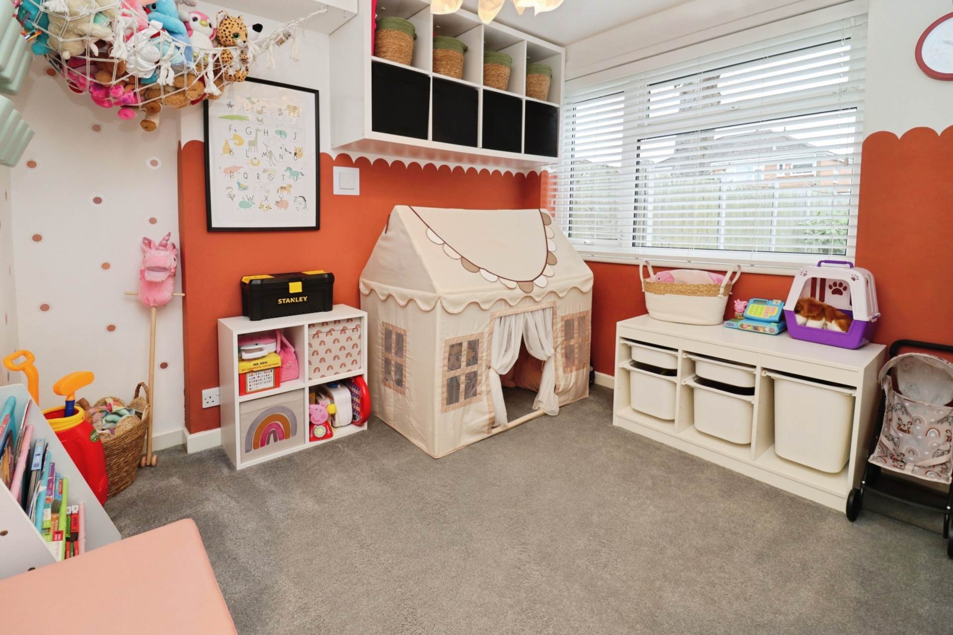 The kitchen offers a contemporary design with ample workspace and a dedicated breakfast area, creating a sociable hub of the home. To the rear, a fantastic and highly versatile playroom provides valuable additional space. Whether used as a children`s playroom, home office, snug, gym, or even converted to suit individual needs, this room adds flexibility rarely found in similar properties. A convenient ground floor shower room further enhances the practicality of the layout.