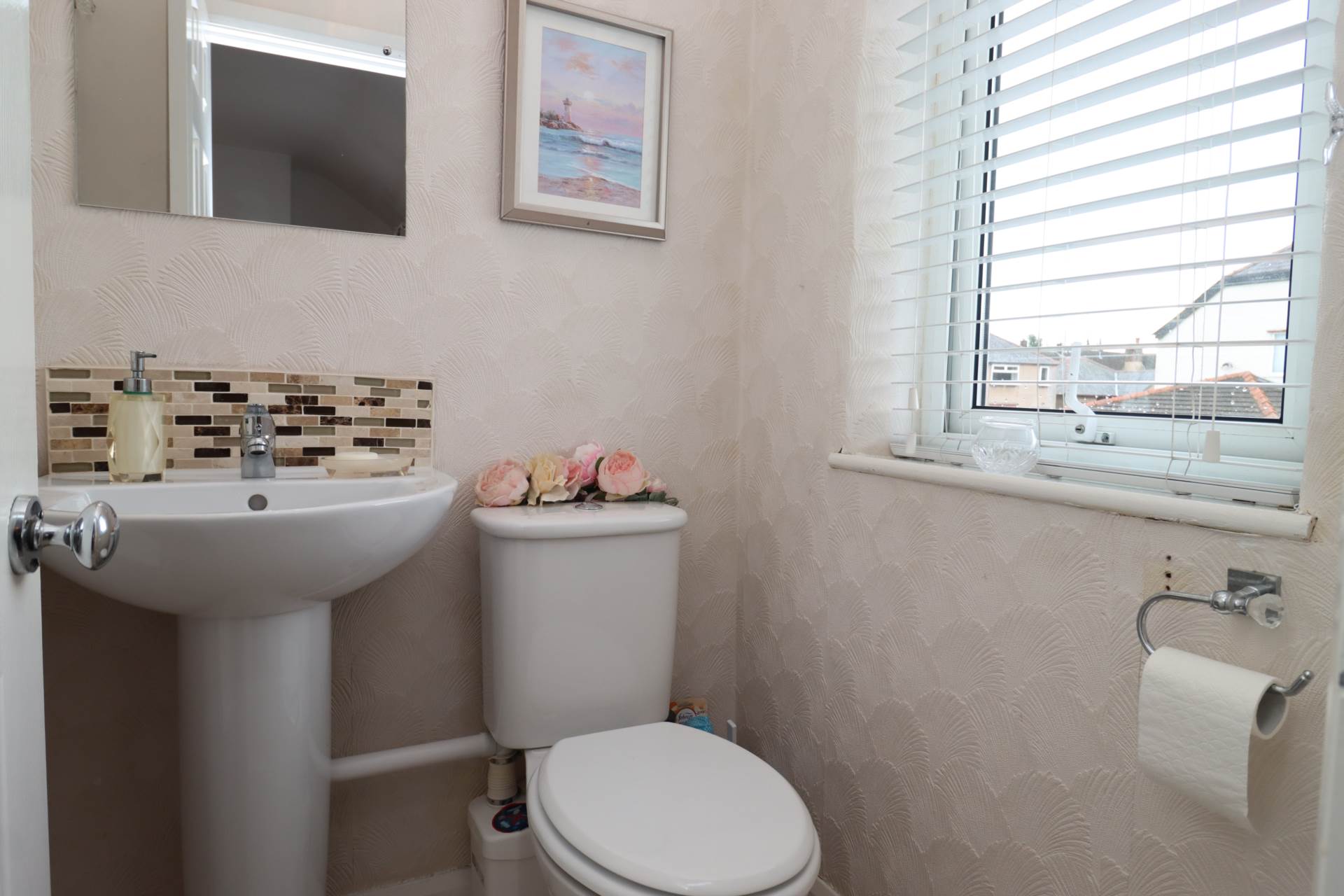 Upstairs, the first floor comprises three well-proportioned bedrooms, with the master bedroom benefiting from an en-suite WC. The property is complemented by a beautifully maintained rear garden with mature shrub borders, offering a peaceful outdoor retreat. A handy utility store is also on hand with plumbing for white goods which adds convenience.