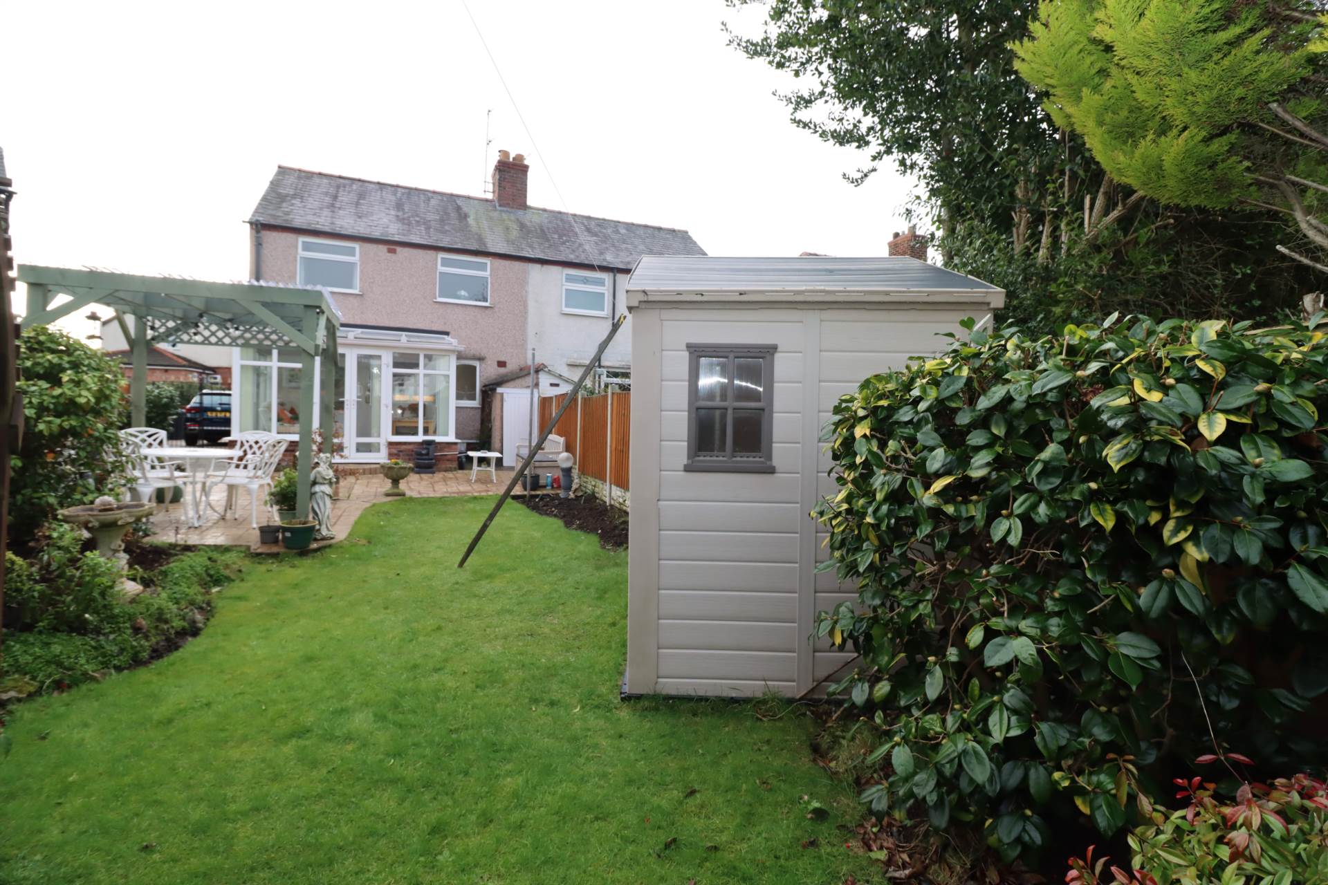Upon entering, you are welcomed by an entrance porch with storage cupboard leading into the inner hall. From here, step into the inviting lounge, featuring a stunning fireplace as its focal point. The spacious kitchen offers ample room for a breakfast bar or dining area, making it perfect for family meals and entertaining. A door from the kitchen leads to the stylish four-piece bathroom suite, which includes a WC, a vanity wash hand basin, a bath, and a separate shower cubicle. The conservatory at the rear provides an additional living space, perfect for relaxation while overlooking the garden.