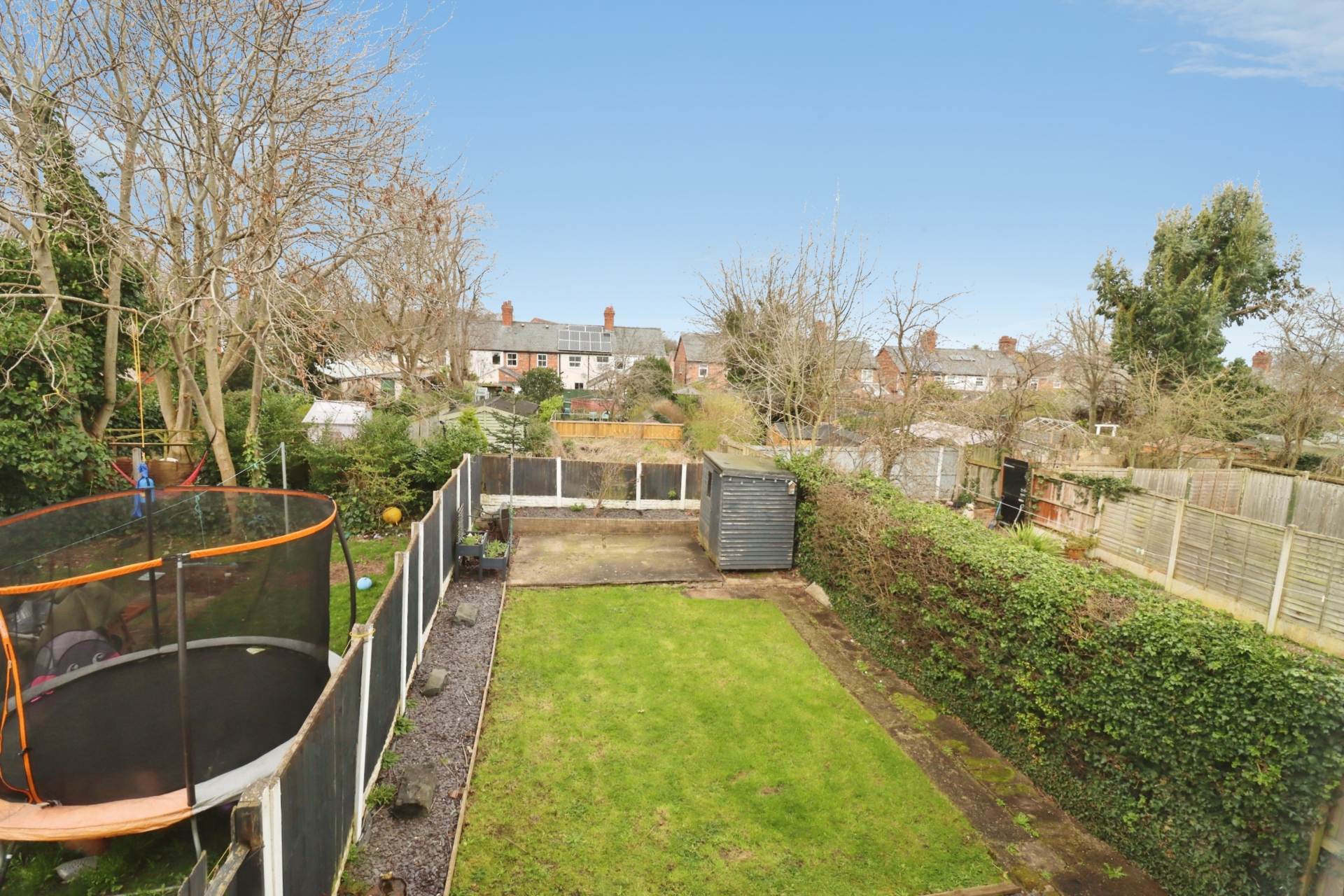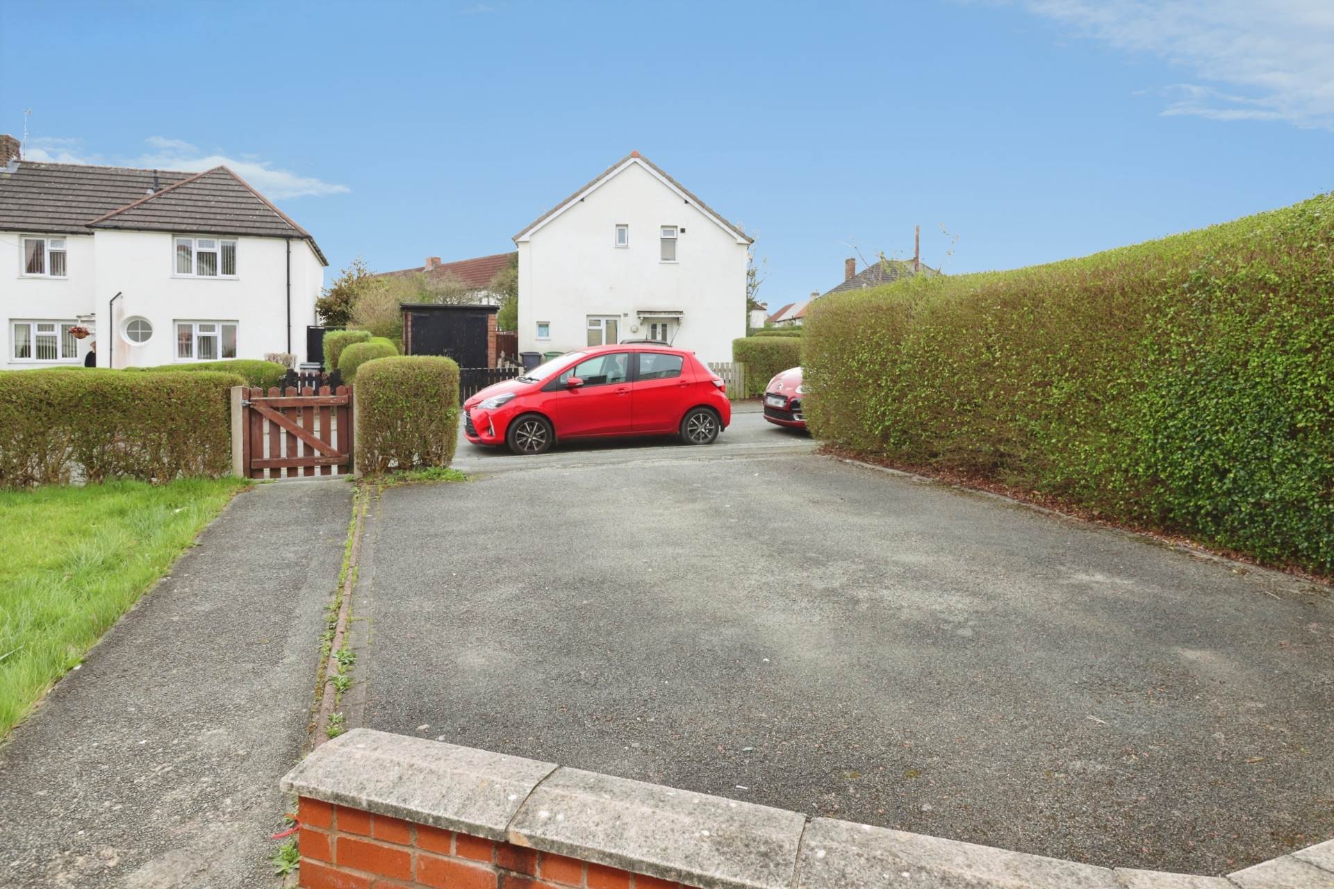Externally, the rear garden features a raised patio area, perfect for outdoor seating and enjoying the warmer months. To the front, there is a driveway providing space for multiple vehicles a valuable feature as not all properties on this estate benefit from this convenience.