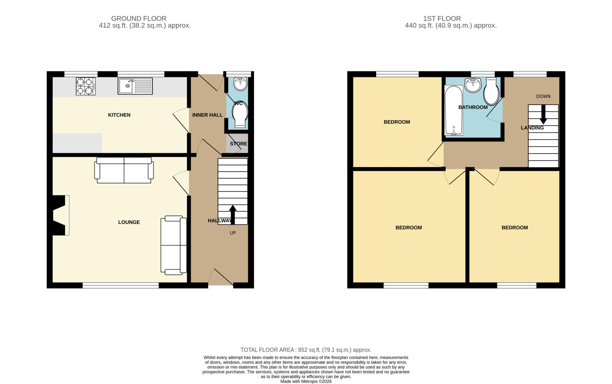 Upstairs, the property offers three bedrooms along with a family bathroom, providing comfortable accommodation for a growing family, guests, or those needing a home office.