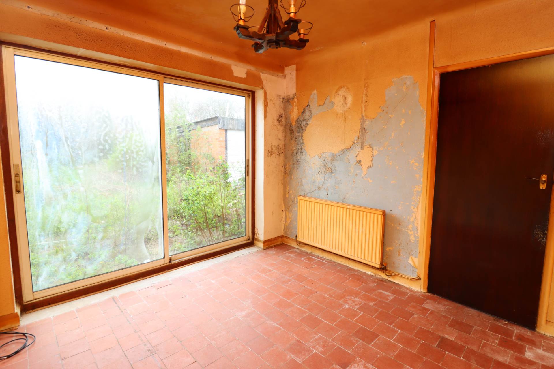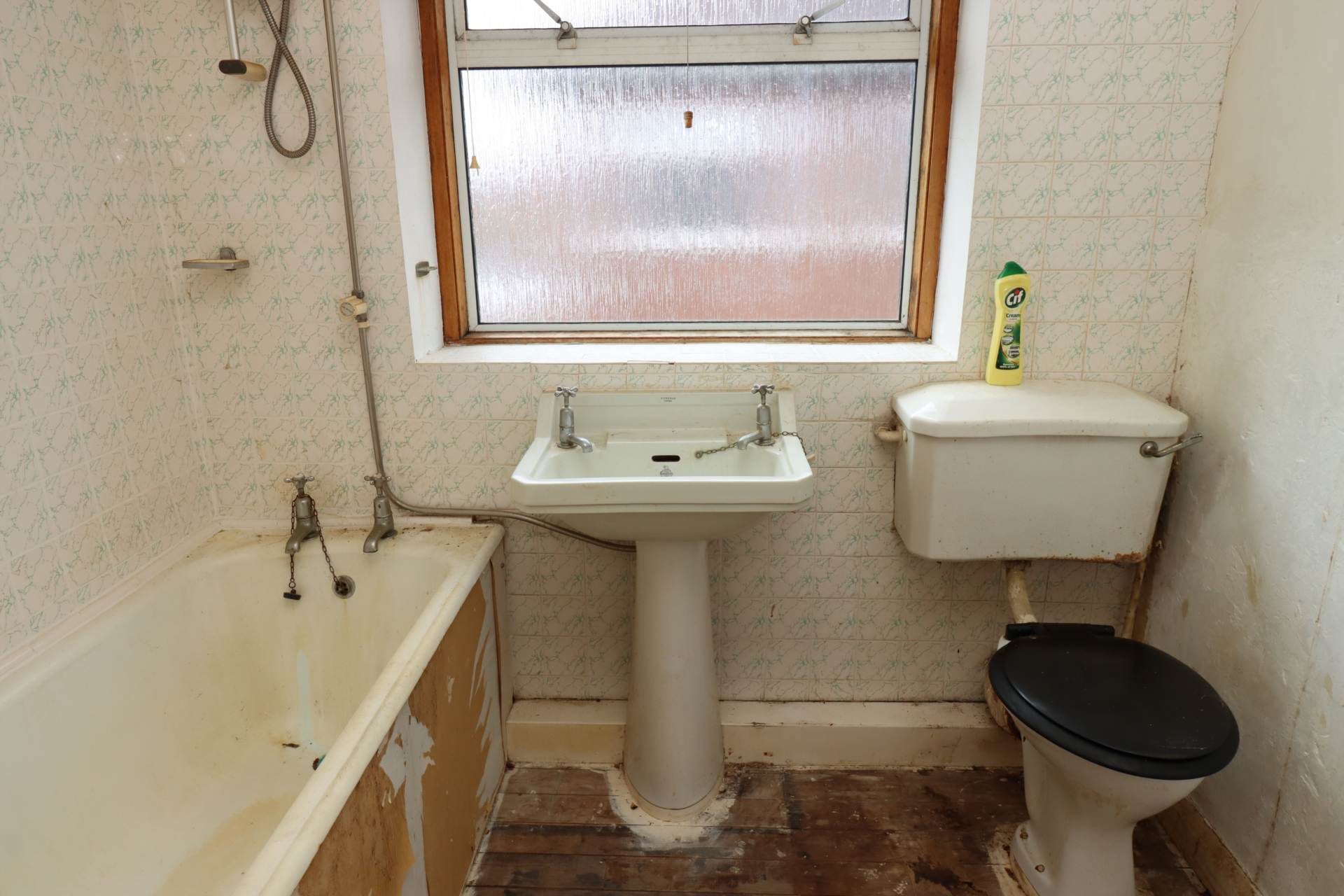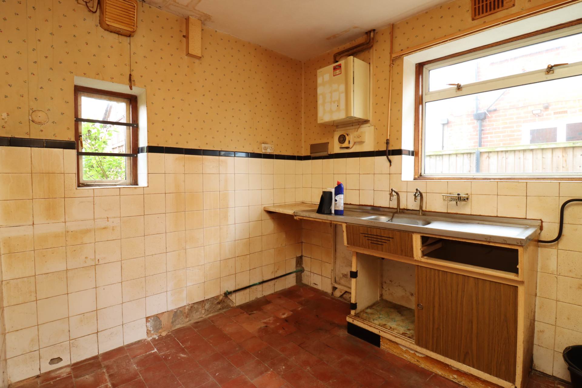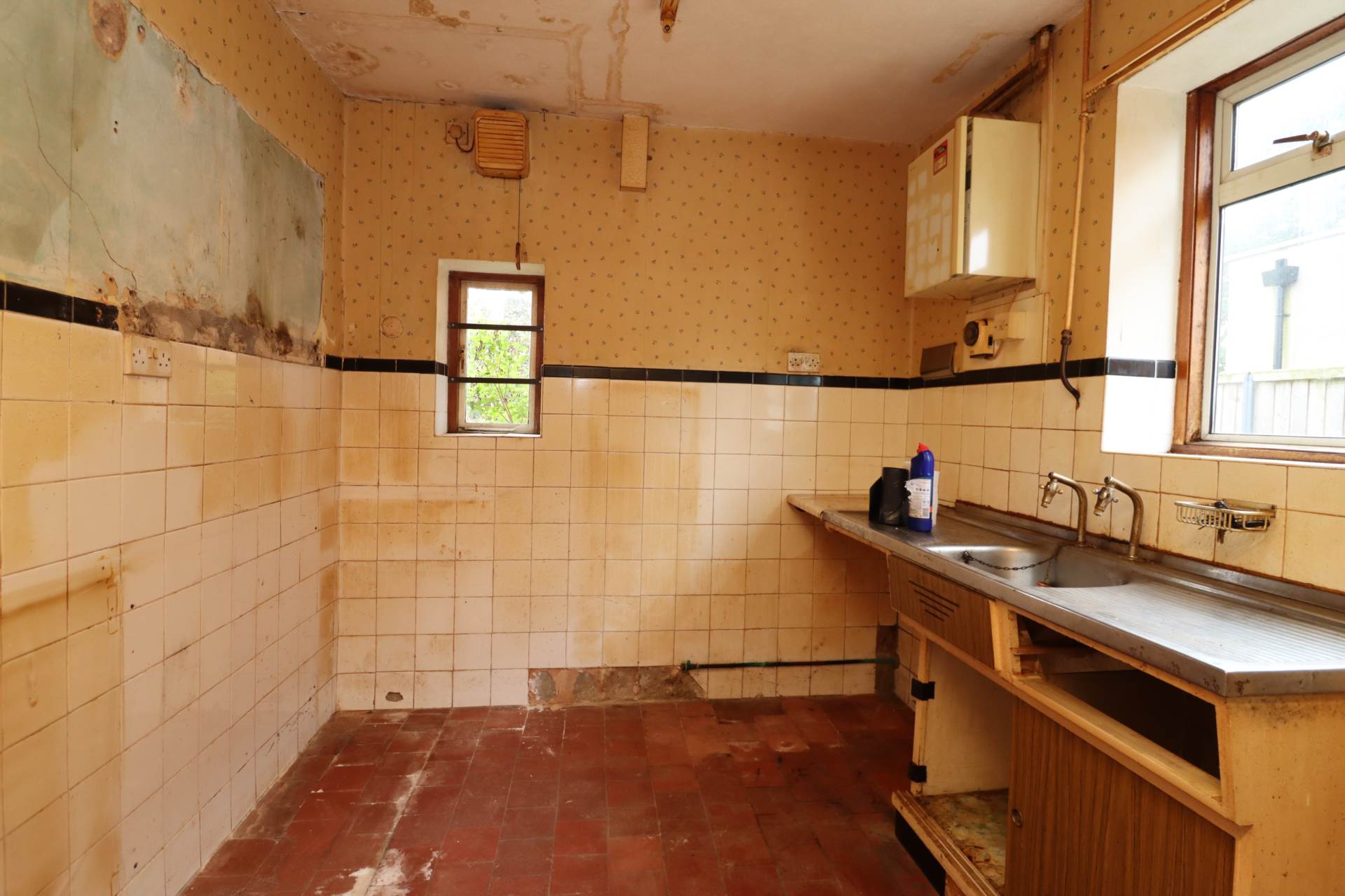 Both the kitchen and bathroom require complete refurbishment, and the garden is currently overgrown and in need of attention. Externally, the property benefits from a driveway leading to a garage, providing useful off-road parking and storage.