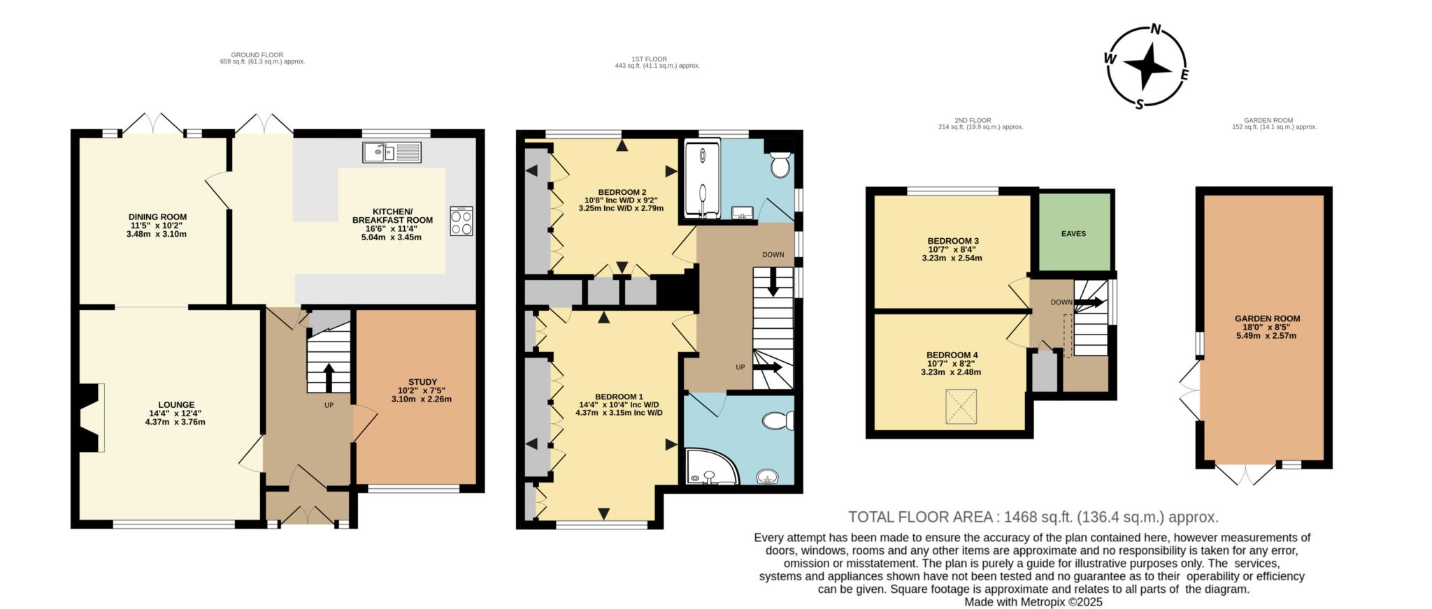 4 bedrooms, 2 shower rooms, lounge, dining room, stylish kitchen/ breakfast room, office/ study, detached garden studio, driveway parking, double glazing, gas radiator central heating.