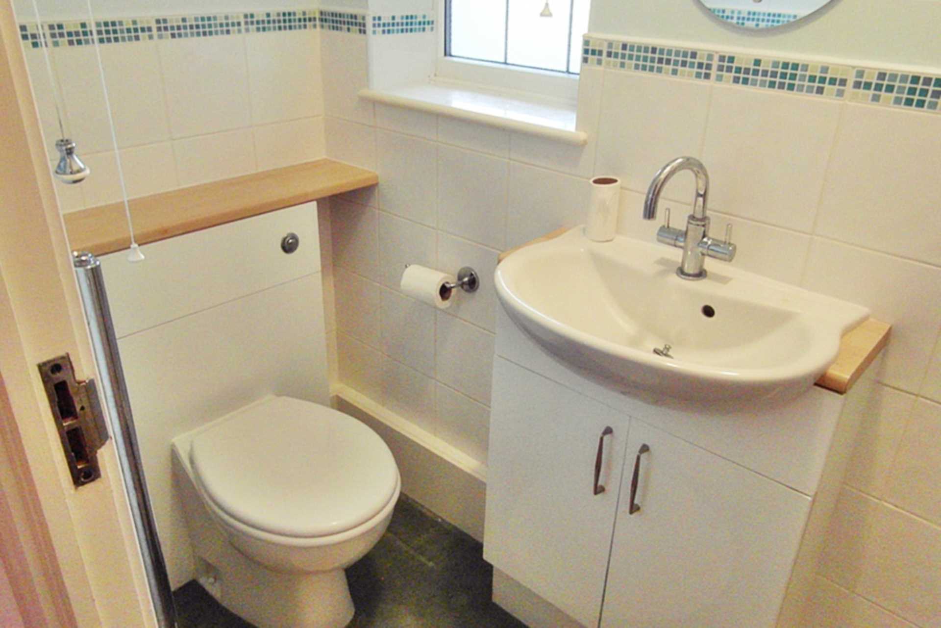 En-Suite - With sealed unit obscure double glazed window in uPVC frame to the front elevation. The en-suite shower room comprises a recess shower tray with shower unit over and glazed shower screen, vanity wash hand basin with concealed low level WC, fully tiled surround walls, a range of down lighters, extractor fan