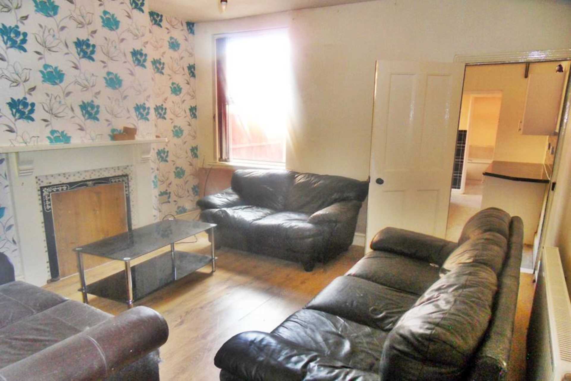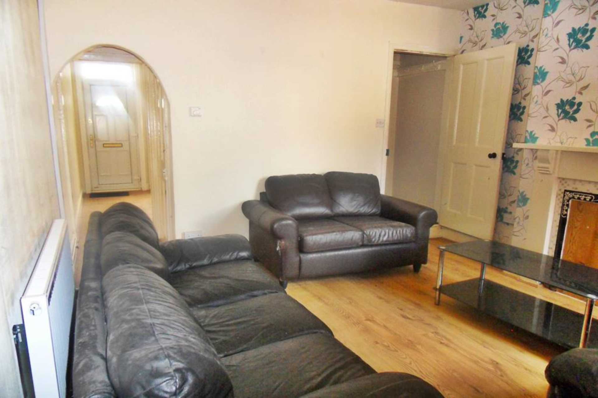 With laminate wood effect flooring and painted walls. Complete with radiator, double glazed windows to the rear elevation and access leading to the kitchen and access to the stairs leading to the first floor landing.